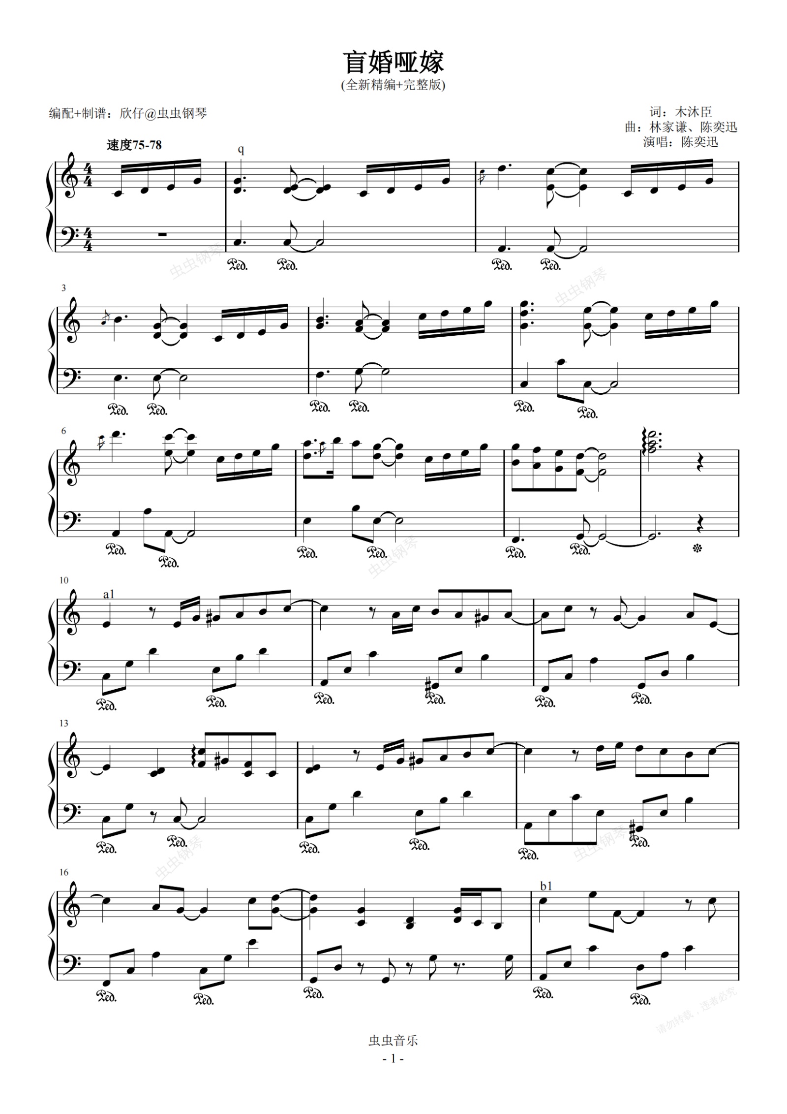 钢琴谱:陈奕迅-C《盲婚哑嫁》(全新精编+完整版)