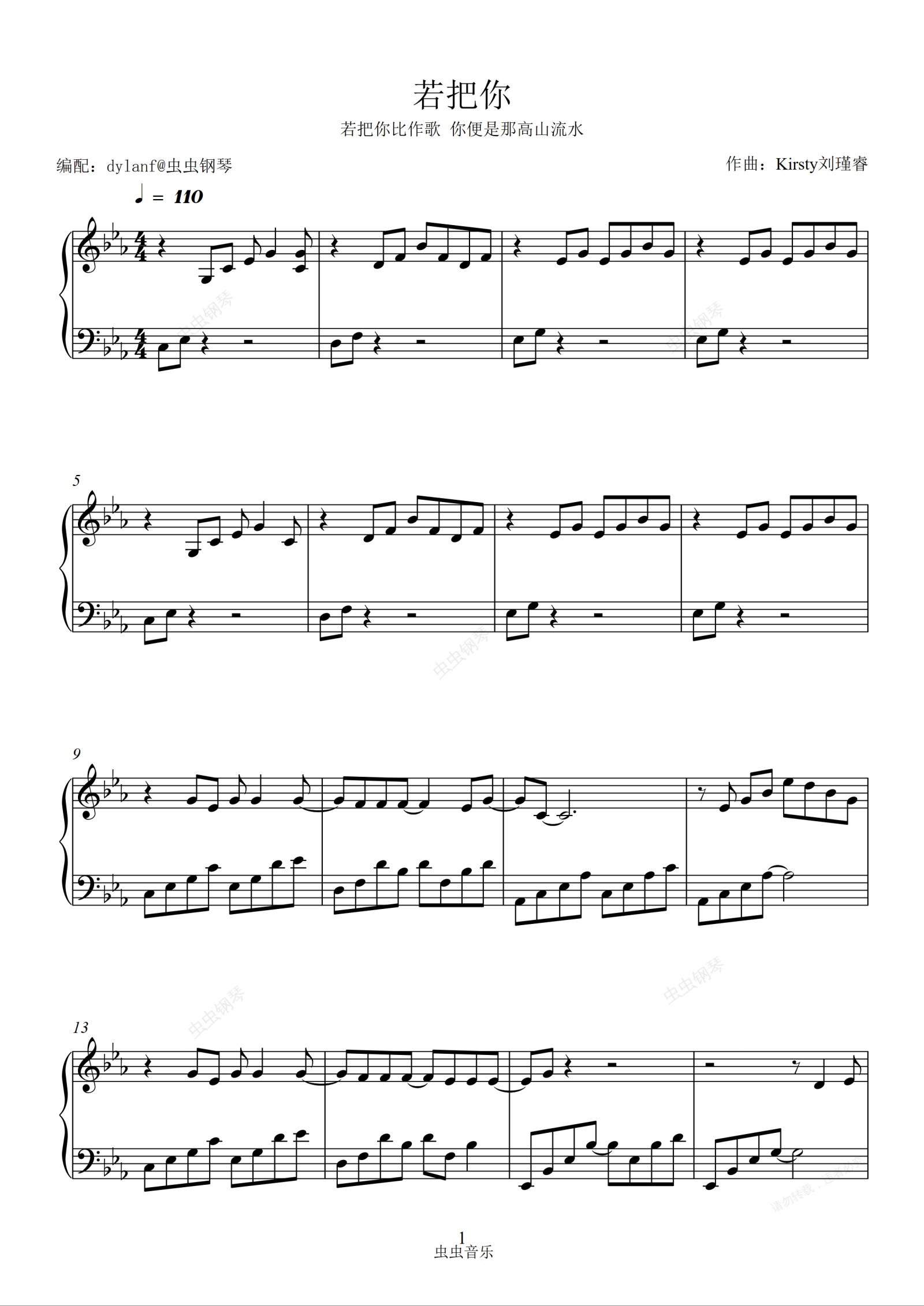 钢琴谱:若把你(高还原好听易弹)Kirsty刘瑾睿