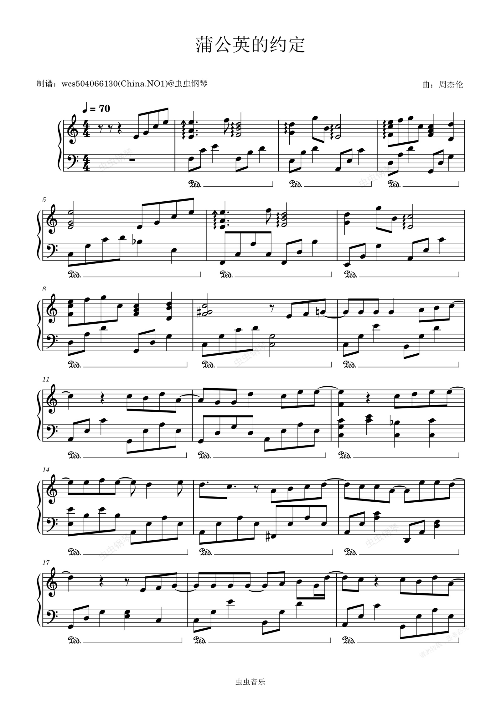 钢琴谱:《蒲公英的约定》-C调-简单贴近原版