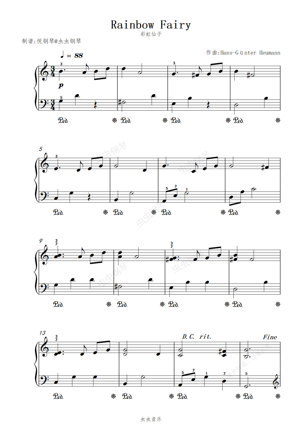 钢琴谱:彩虹仙子//Rainbow Fairy【治愈小曲】