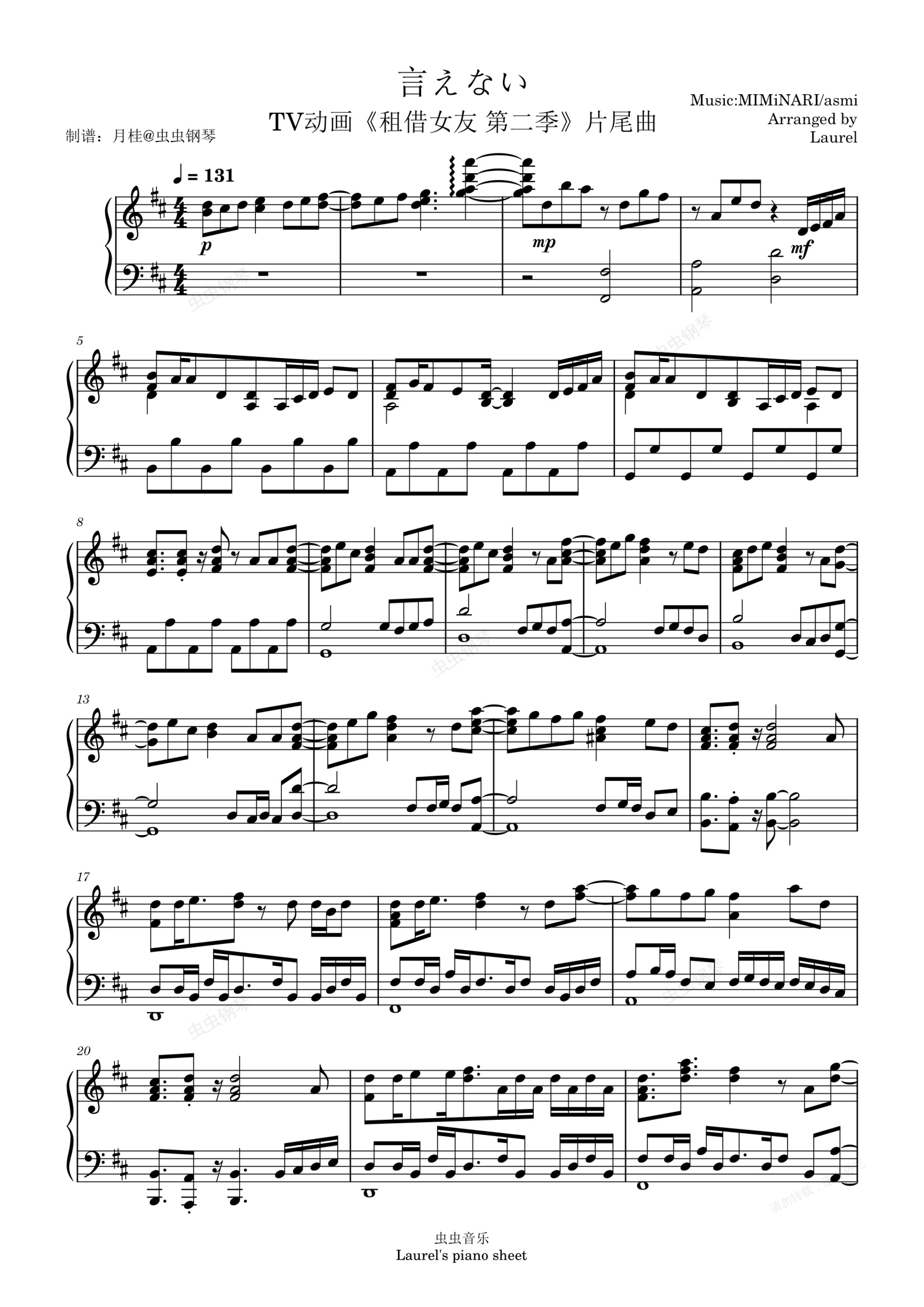 钢琴谱:言えない-租借女友 第二季 片尾曲