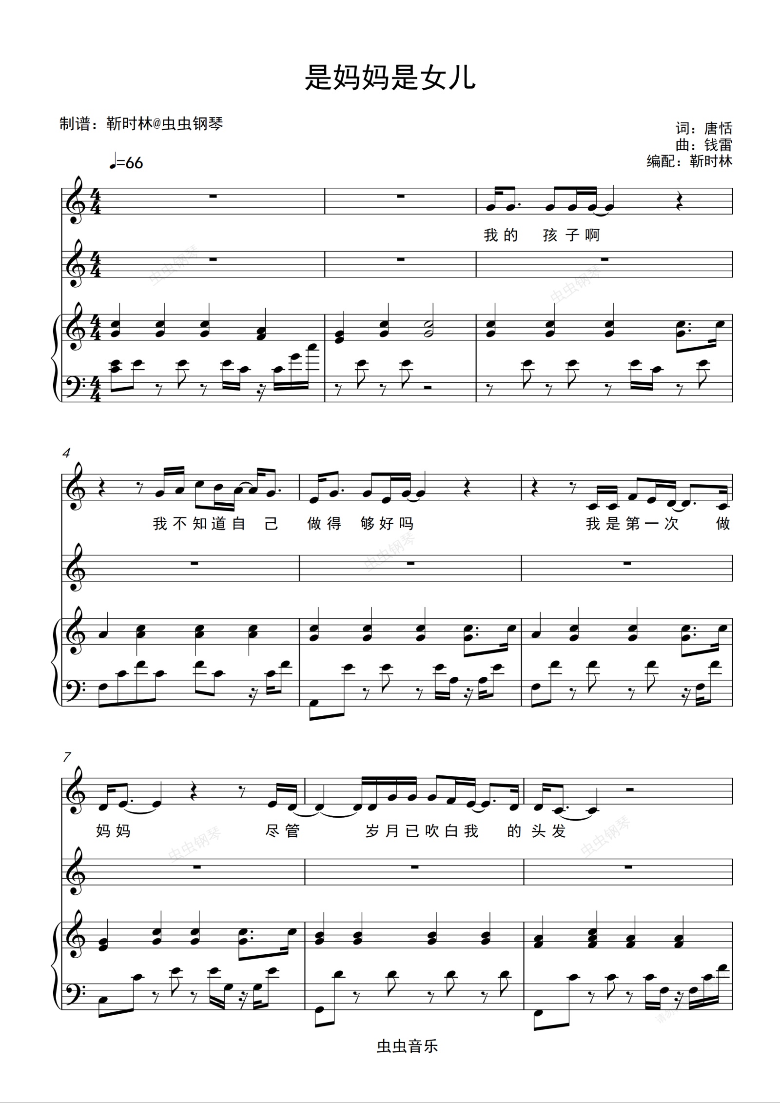钢琴谱:春晚歌曲《是妈妈是女儿》C调极致复刻带歌词