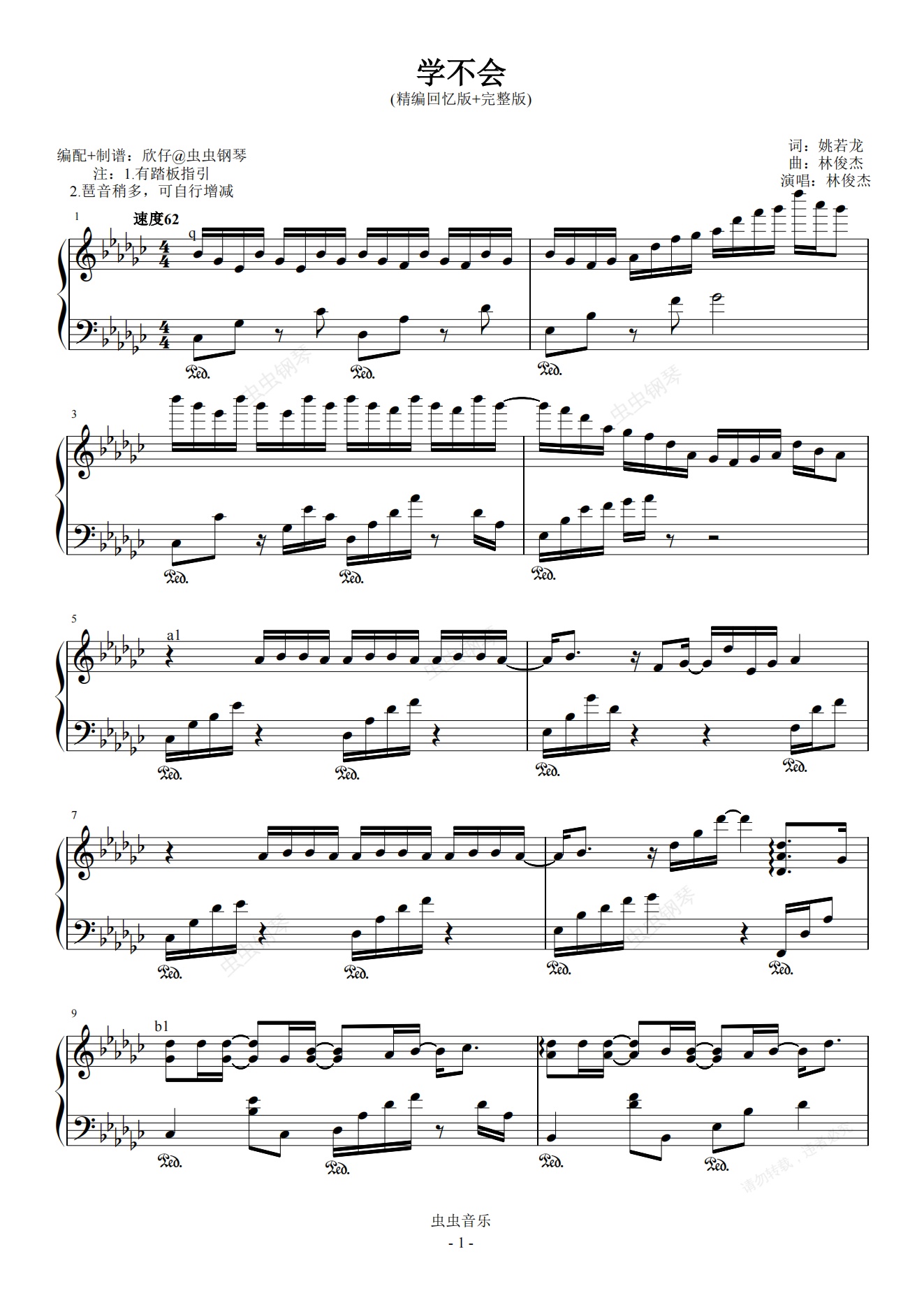 钢琴谱:林俊杰-降G-《学不会》(精编回忆版+完整版)