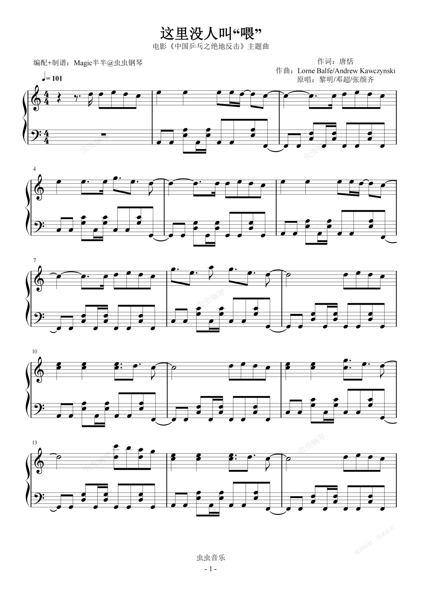 钢琴谱:这里没人叫“喂”(C调)<中国乒乓之绝地反击>主题曲