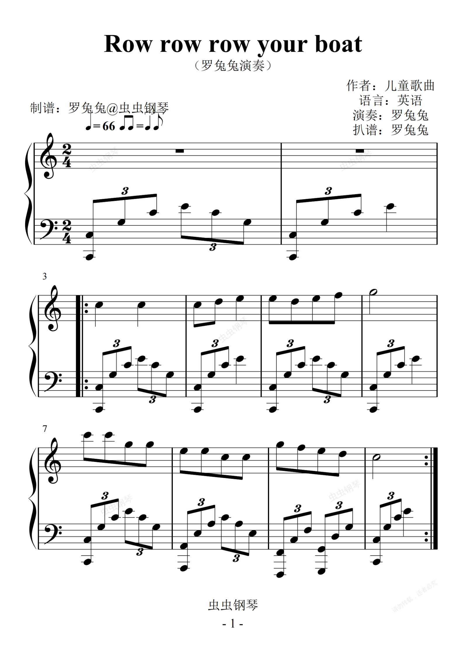钢琴谱:Row row row your boat(罗兔兔演奏)