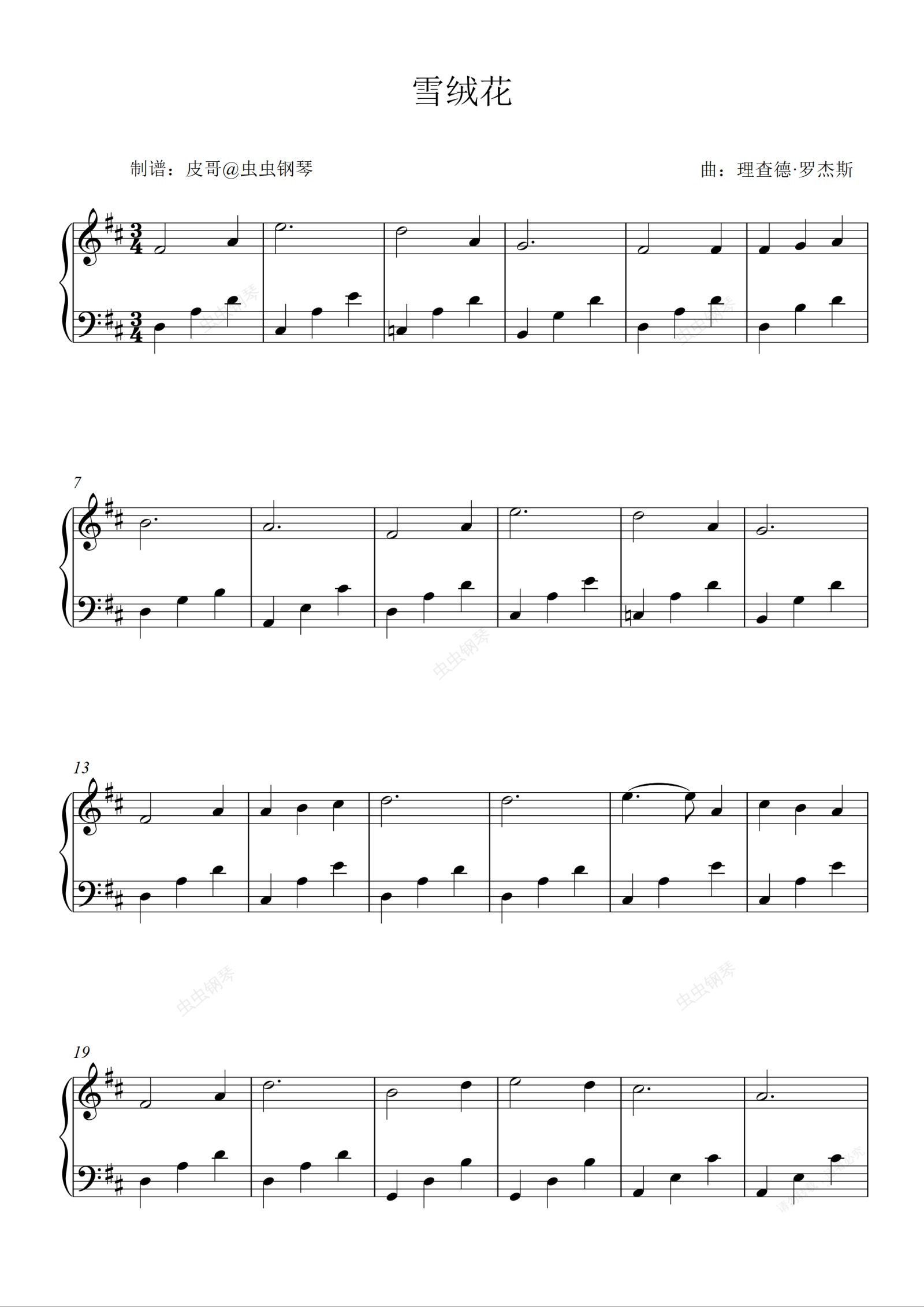 钢琴谱:雪绒花 零基础版本