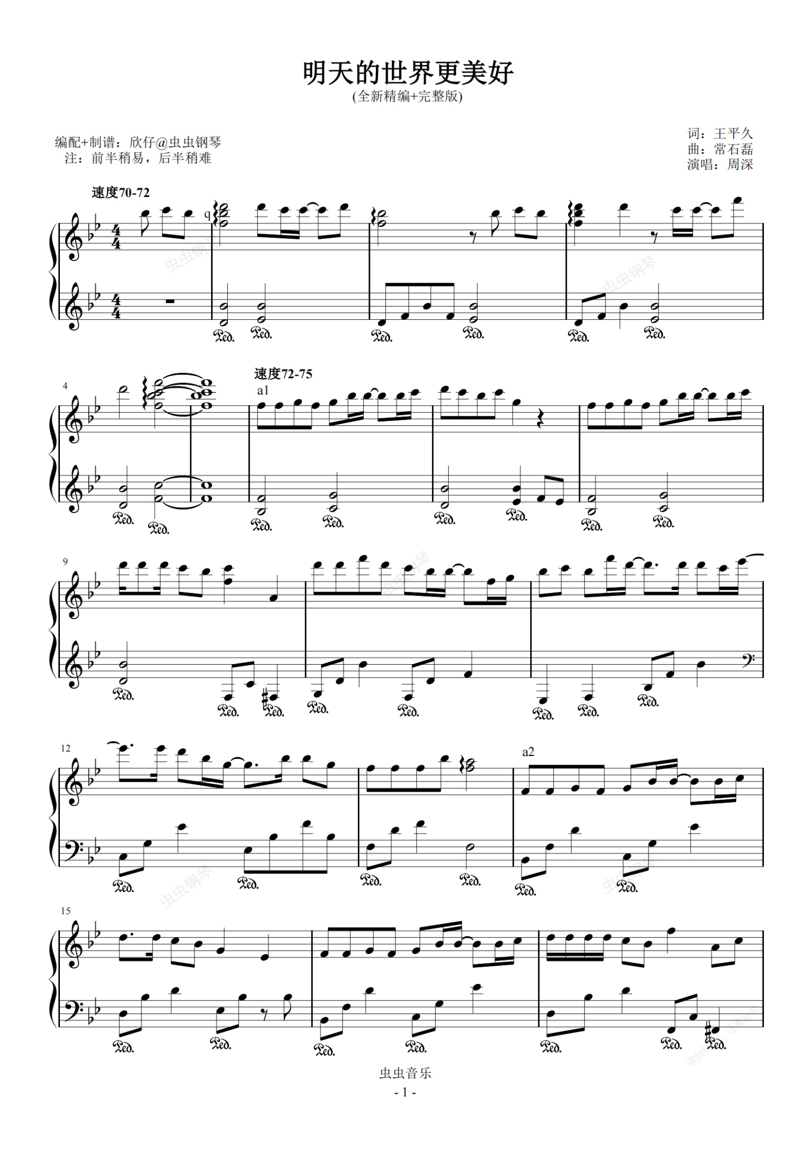 钢琴谱:周深-降B《明天的世界更美好》(全新精编+完整版)