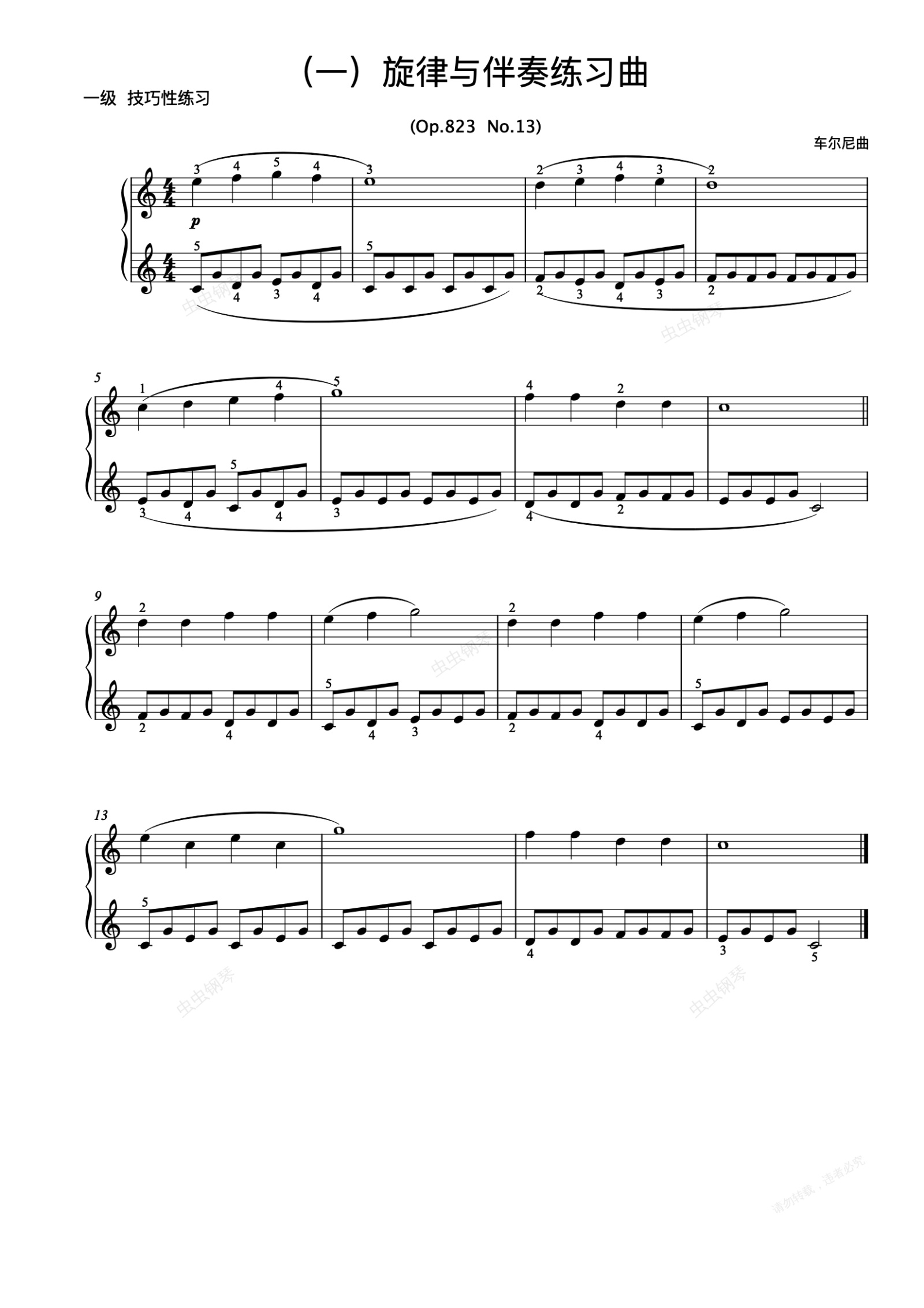 钢琴谱:1级-1-旋律与伴奏练习曲