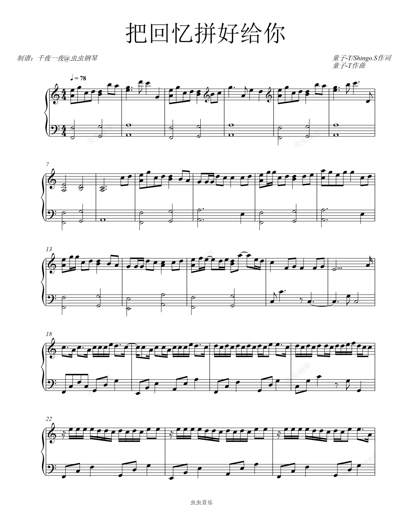 钢琴谱:王贰浪《把回忆拼好给你》钢琴版
