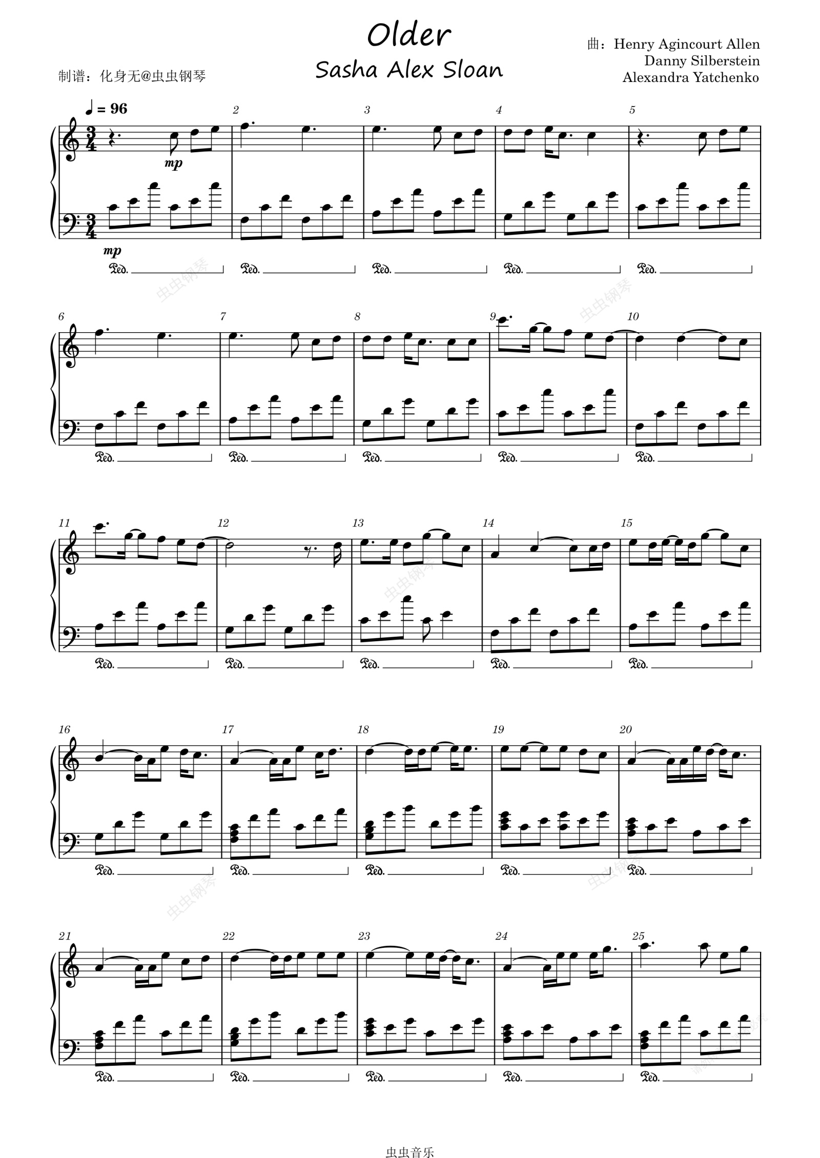 钢琴谱:Older C调钢琴版 Sasha Alex Sloan