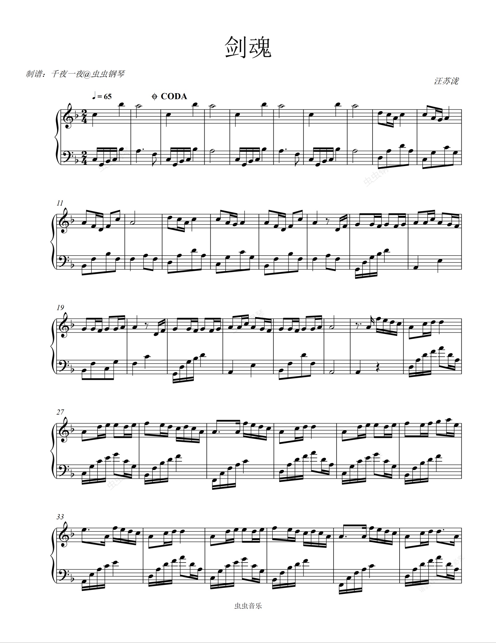 钢琴谱:汪苏泷《剑魂》重启版上线,古风歌曲和国潮魅力持续升温