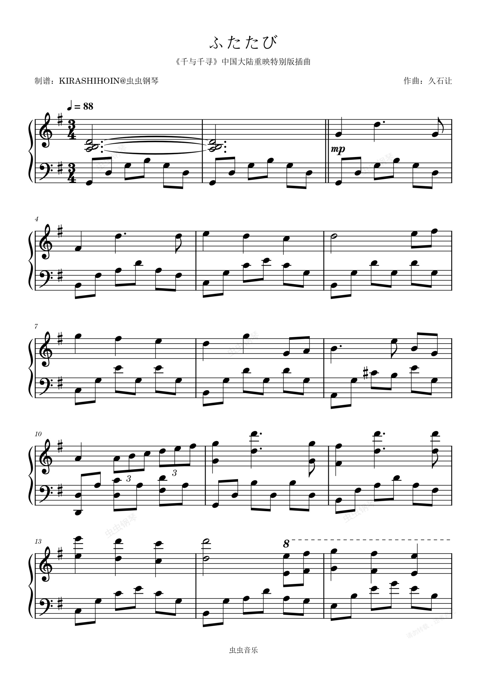 钢琴谱:再度/ふたたび - 中国大陆重映特别版(《千与千寻》插曲) - 久石让