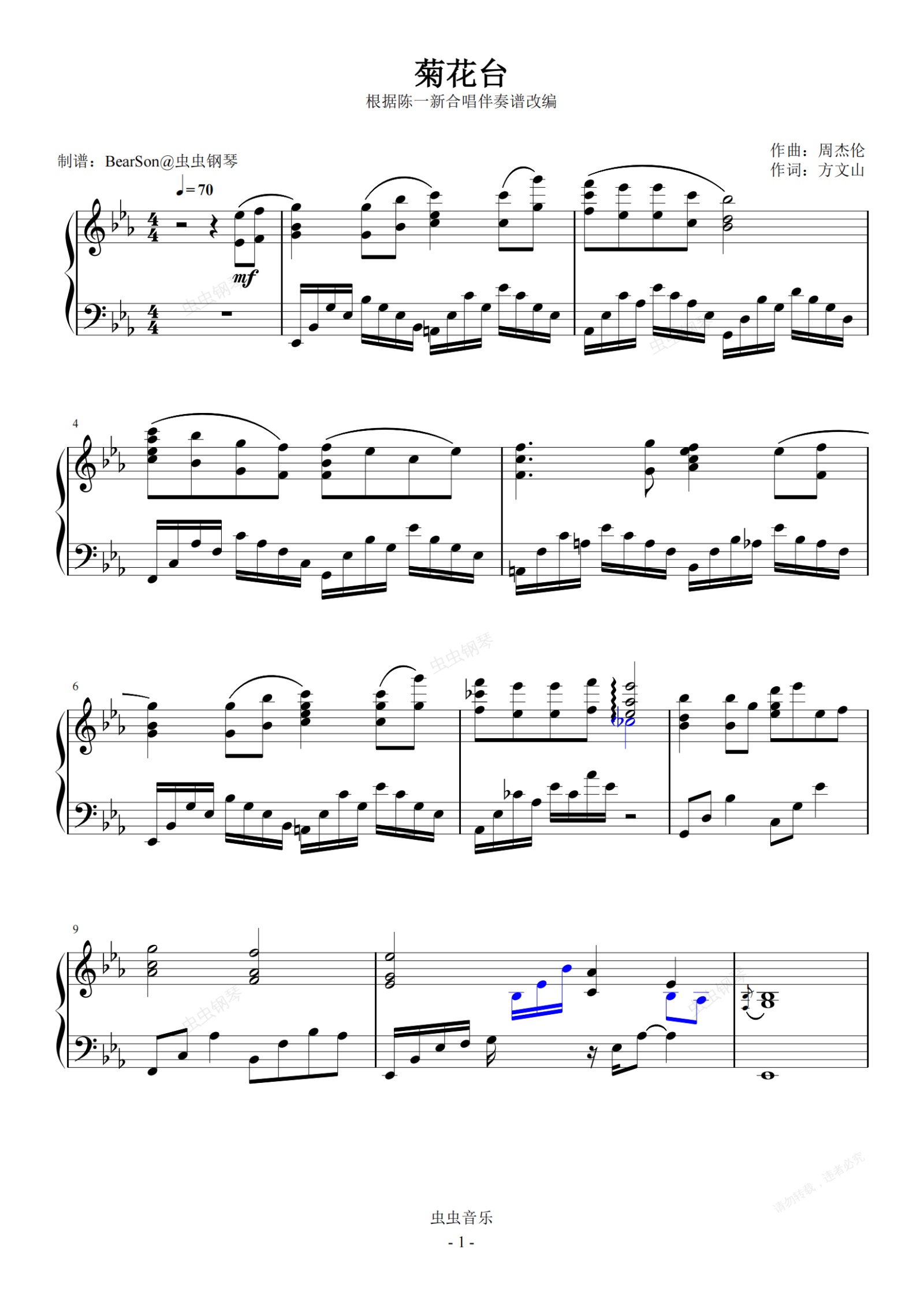钢琴谱:菊花台-周杰伦 完美钢琴独奏版