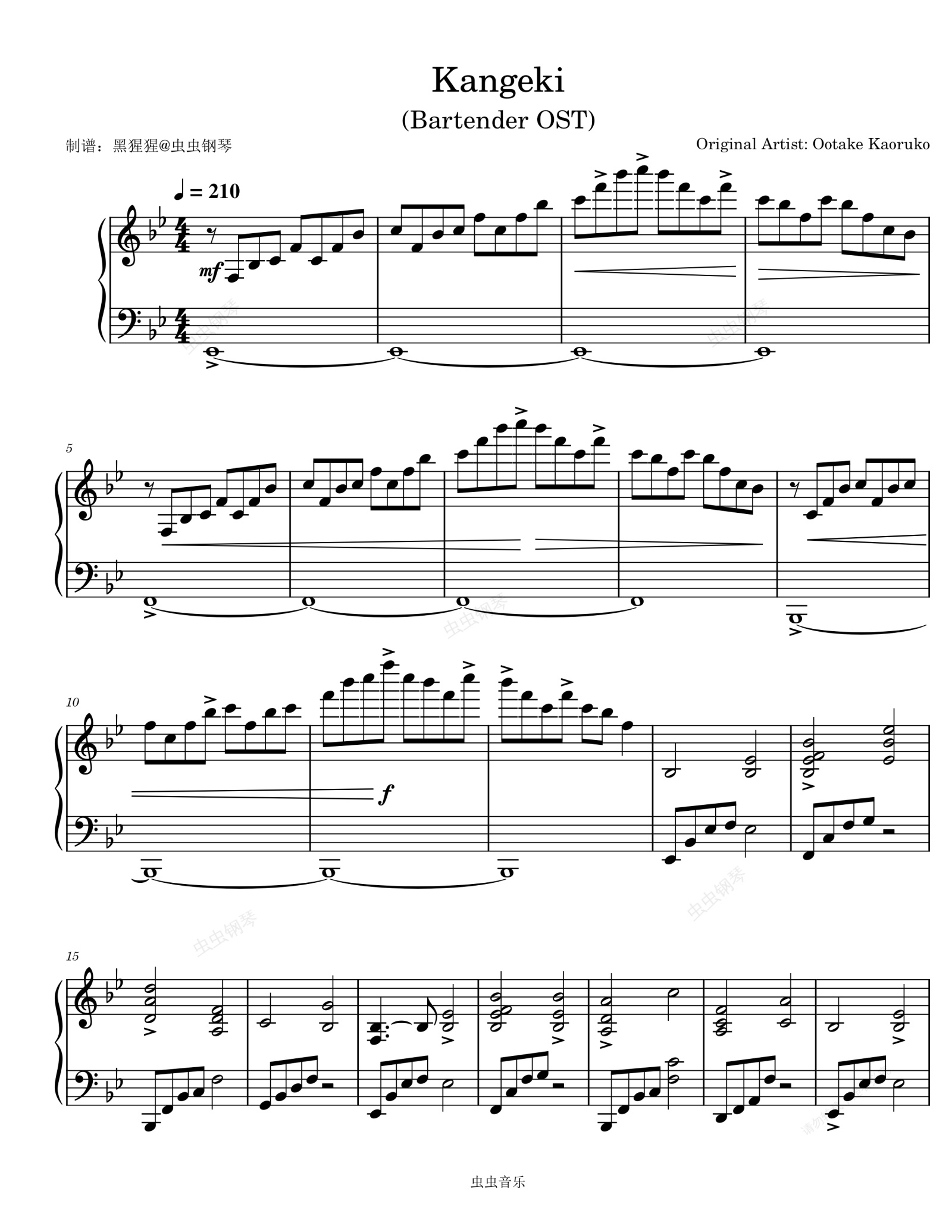 钢琴谱:大竹薰子-Bb调 《Kangeki》