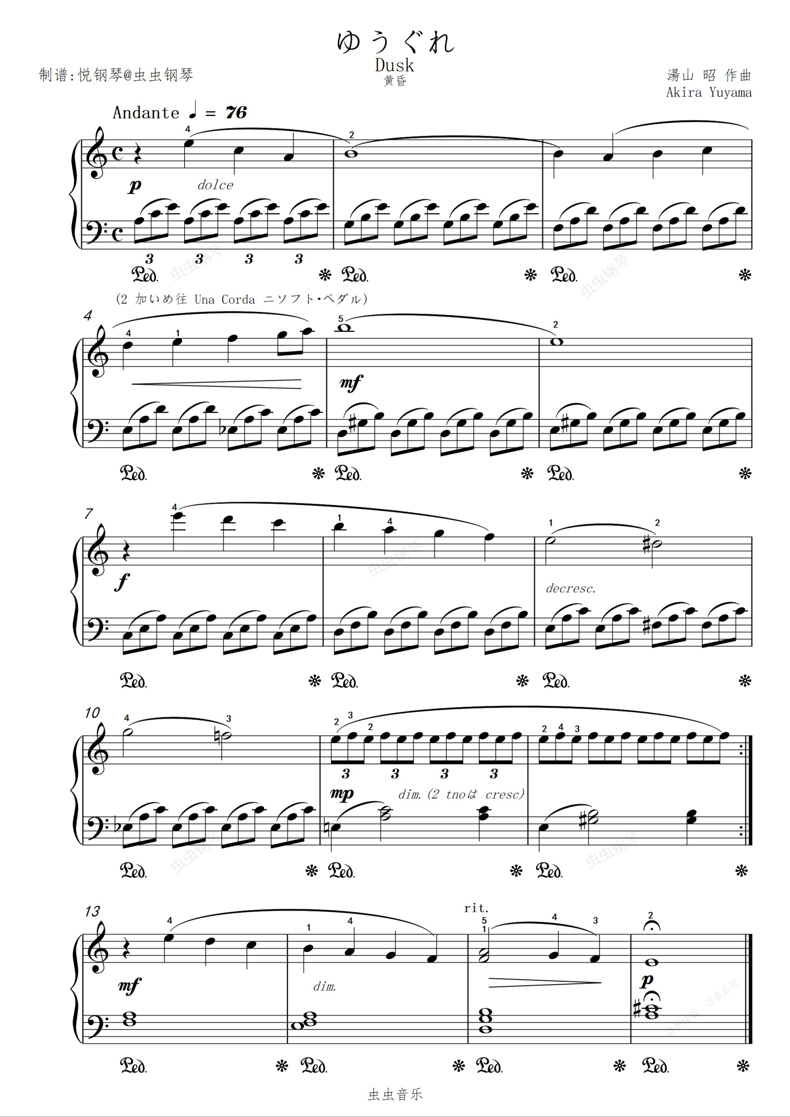 钢琴谱:黄昏//Dusk【唯美-超好听】