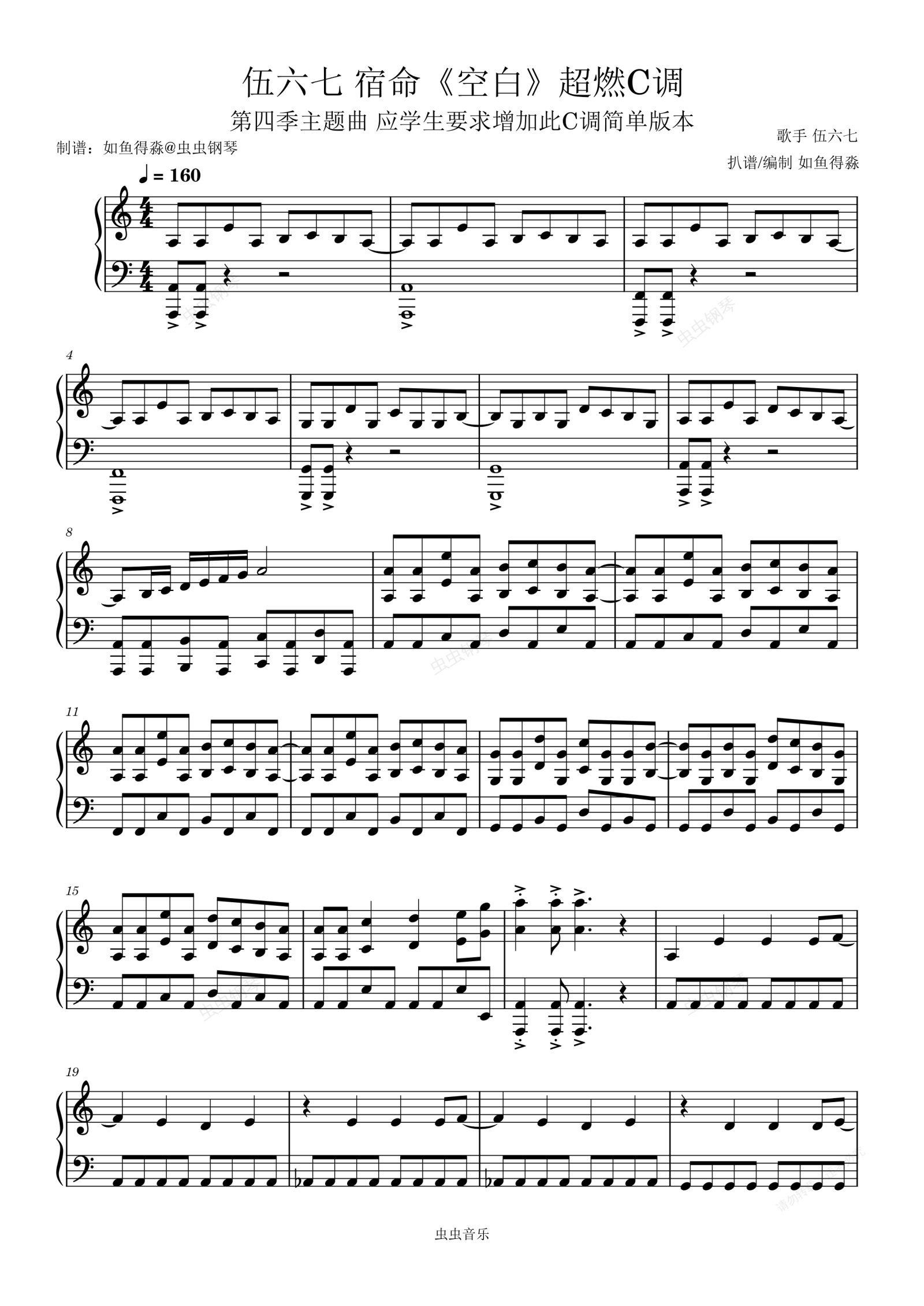 钢琴谱:伍六七 宿命《空白》 超燃版C调 第四季主题曲