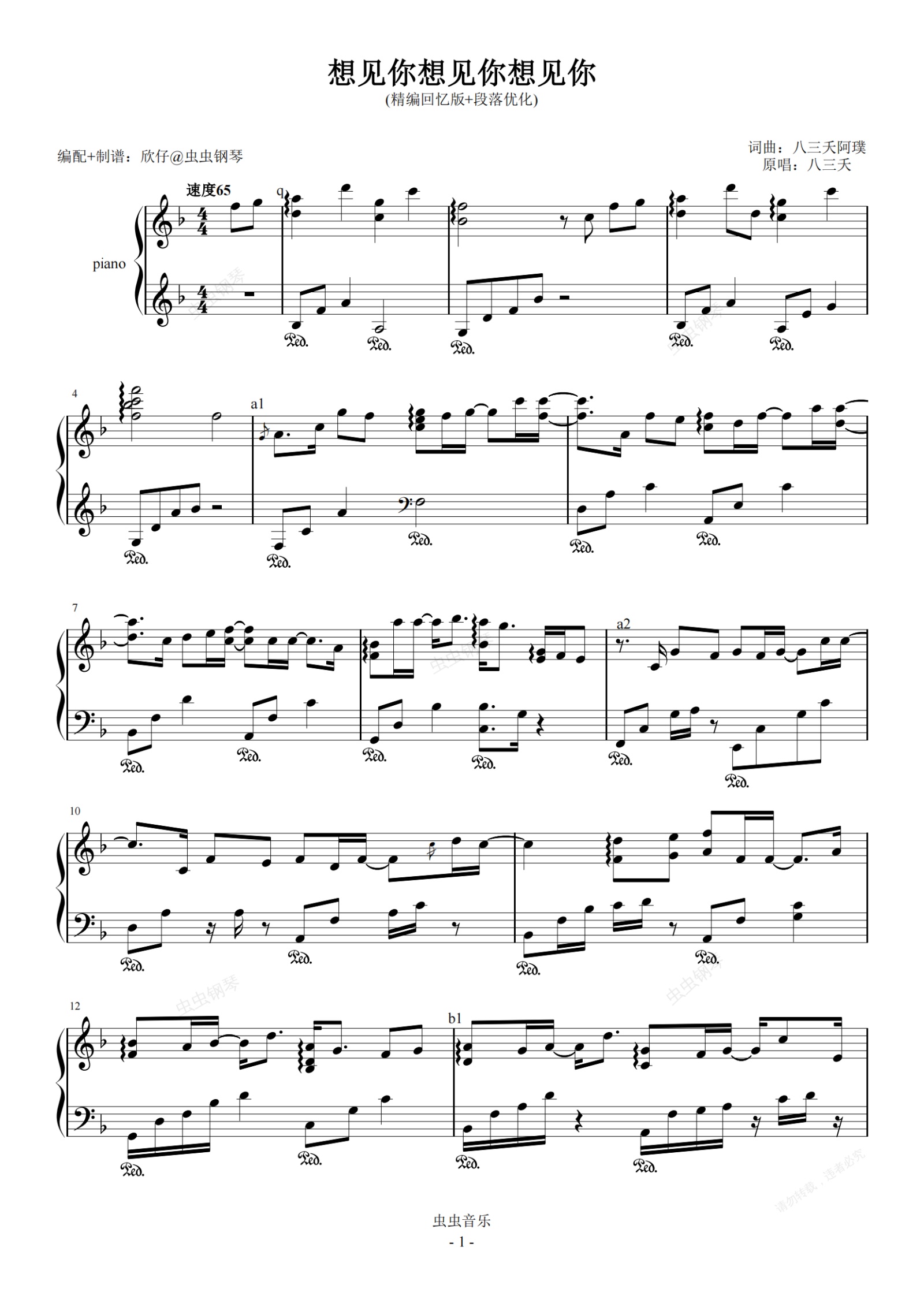 钢琴谱:八三夭-F《想见你想见你想见你》(精编回忆版+段落优化)