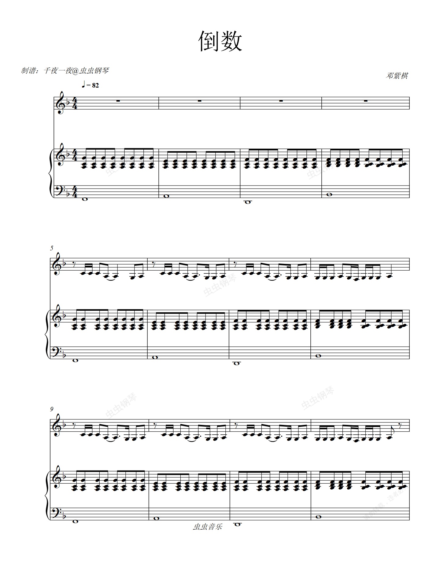 钢琴谱:邓紫棋最新单曲《倒数》 有你别无所求了