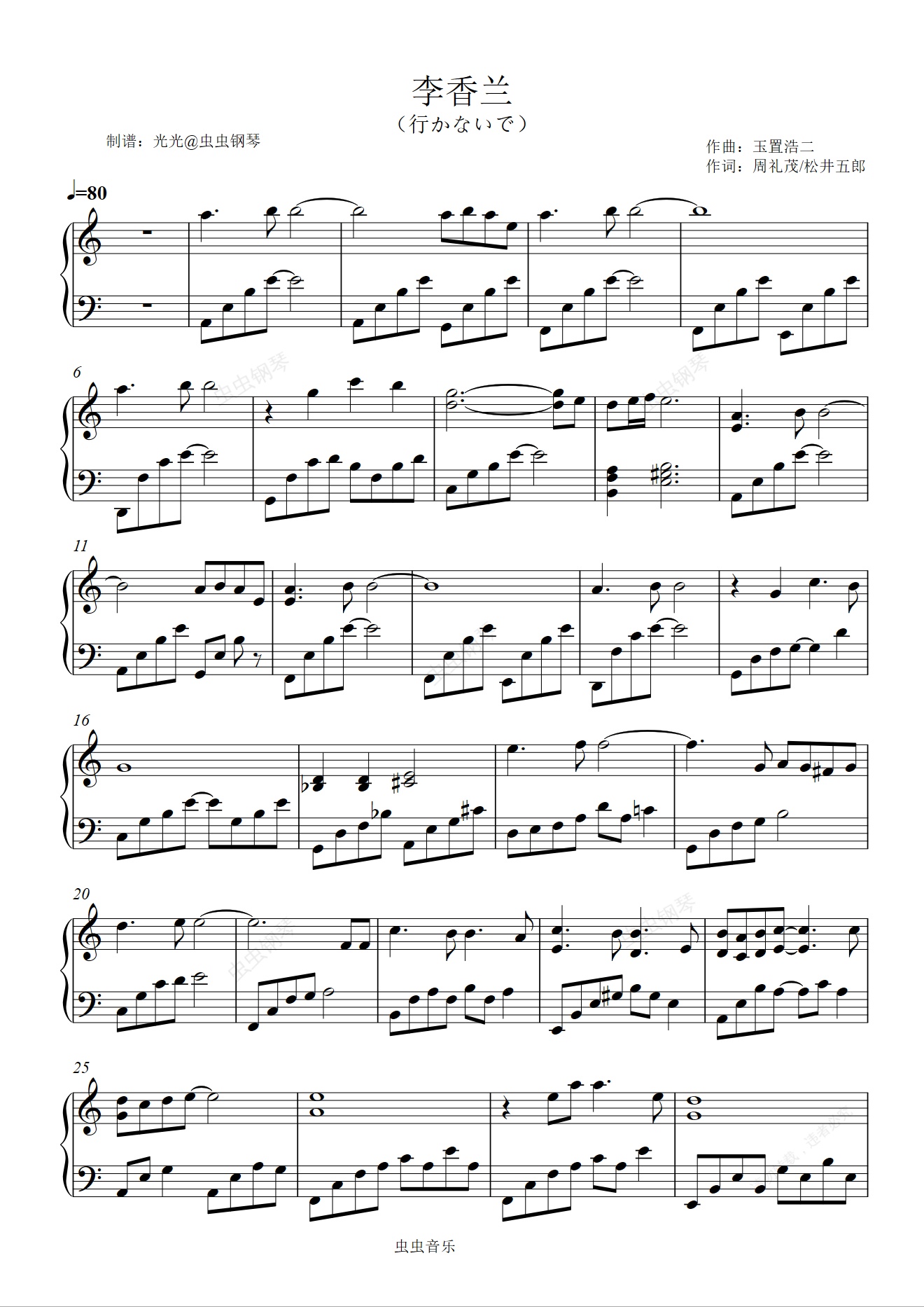 钢琴谱:李香兰(行かないで)