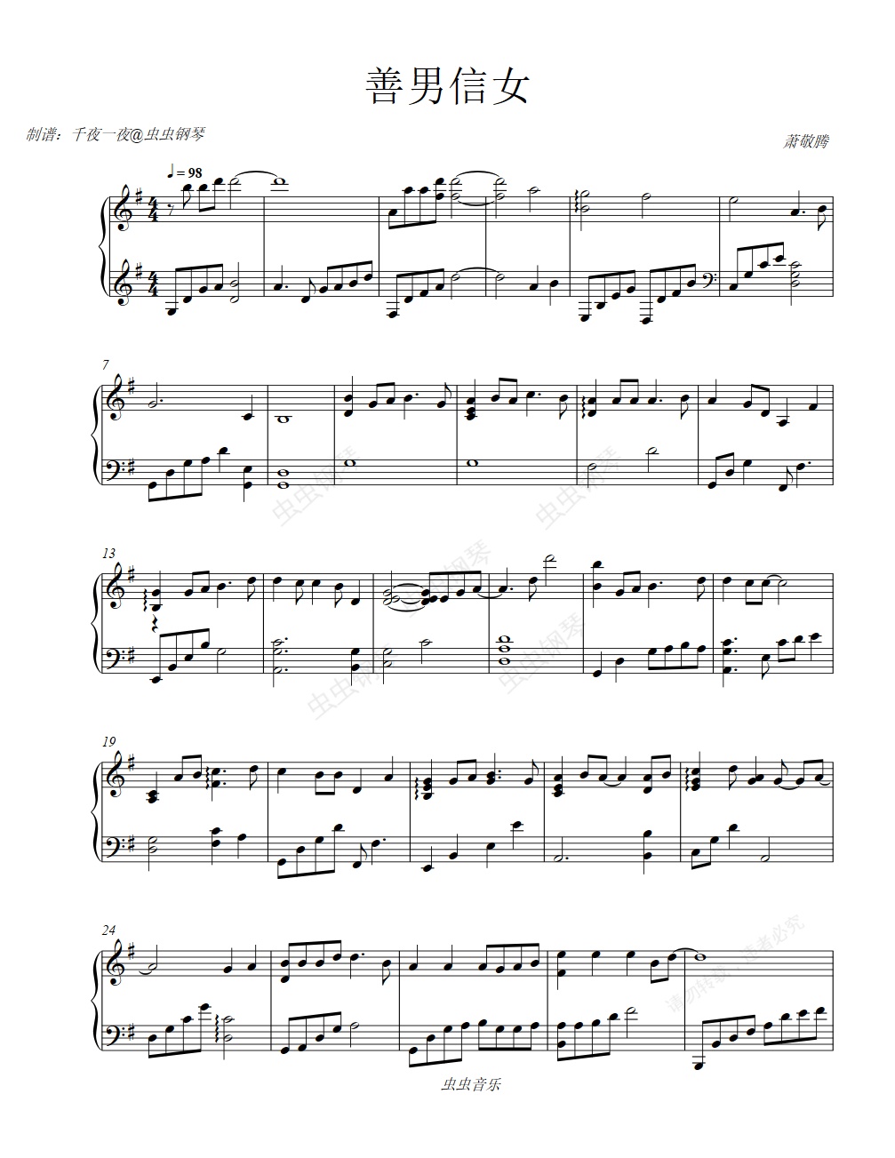 钢琴谱:520送给大家一首萧敬腾的 善男信女!