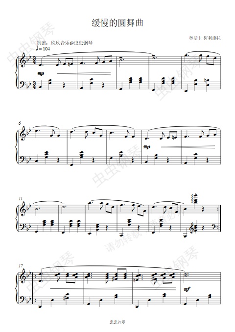 钢琴谱:缓慢的圆舞曲—奥斯卡·梅利康托