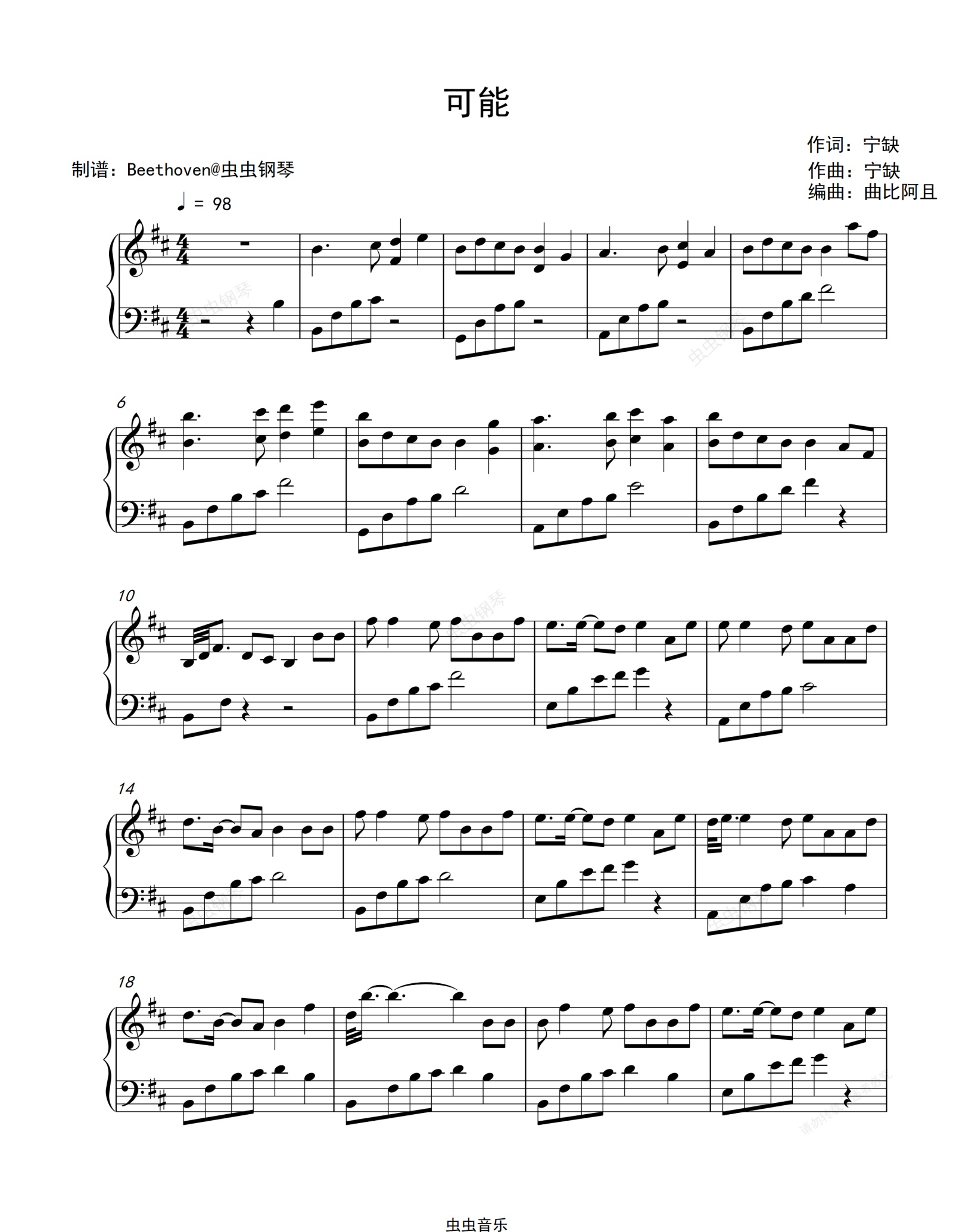 钢琴谱:可能-可能西安城墙上有人誓言不分 可能要去到大理才算爱得认真-程响