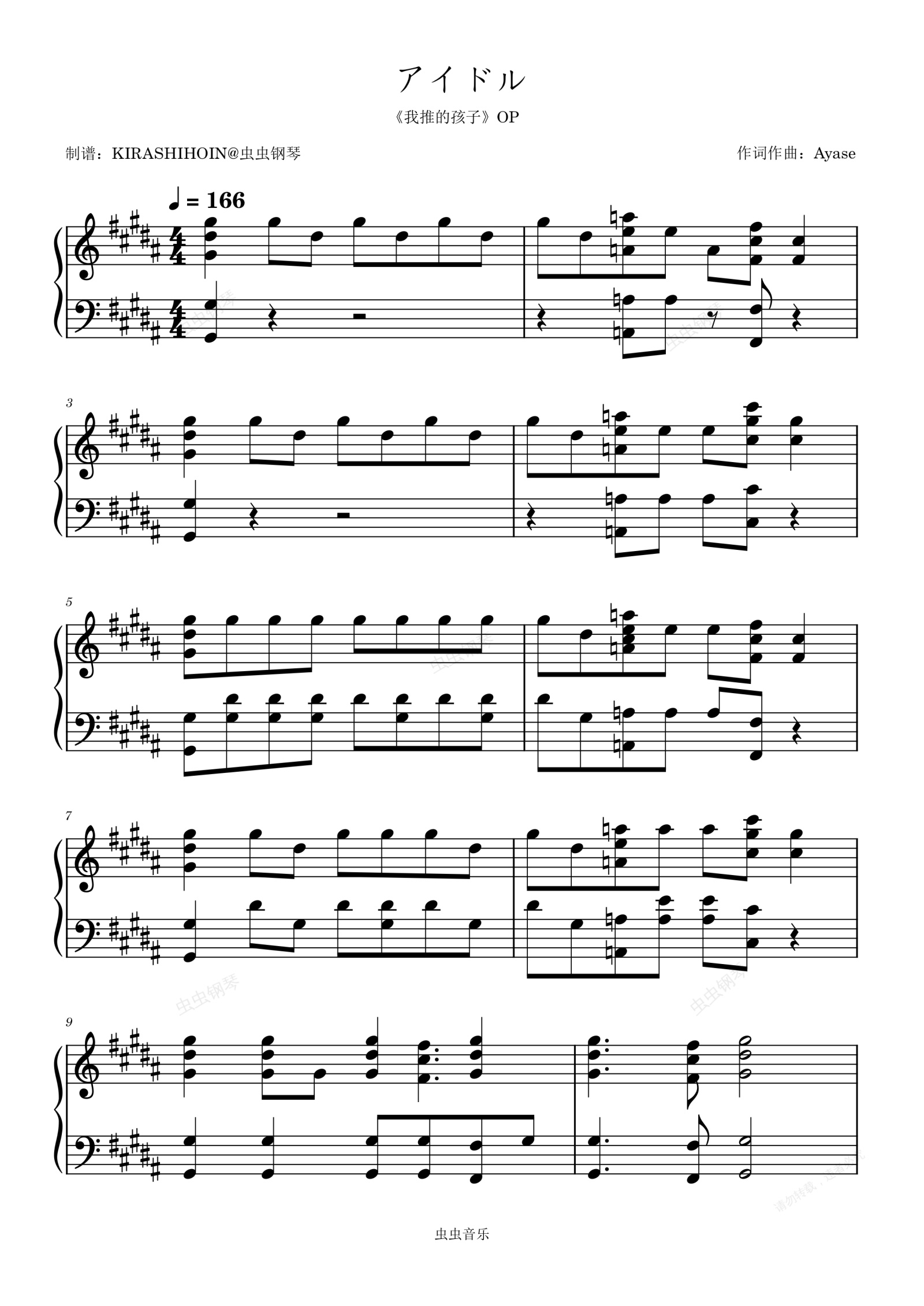 钢琴谱:アイドル(《我推的孩子》OP/片头曲)- YOASOBI