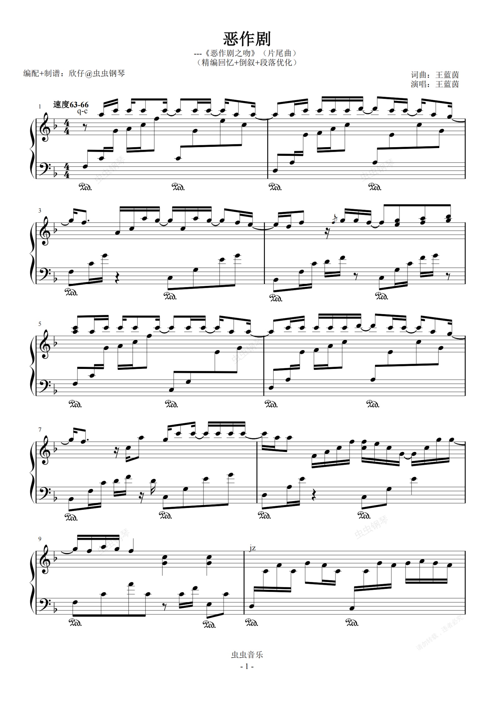 钢琴谱:王蓝茵-F-G《恶作剧》(精编回忆+倒叙+段落优化)