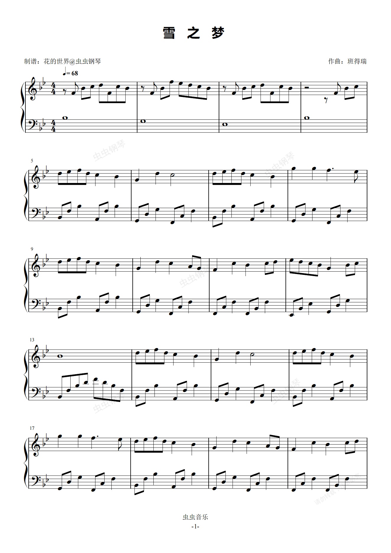 钢琴谱:雪之梦 原调简易版 班得瑞 经典