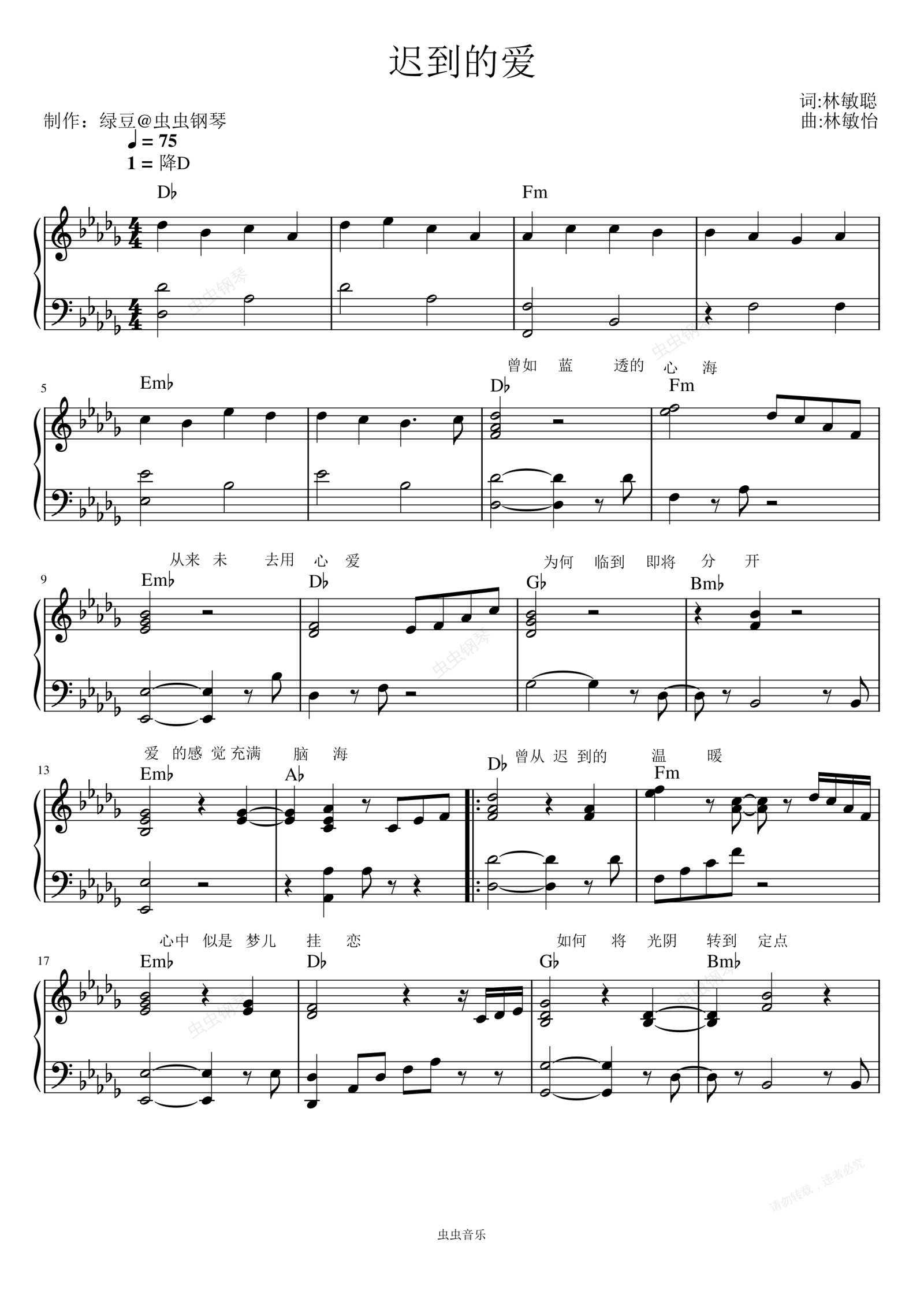 钢琴谱:《迟到的爱》钢琴弹唱谱