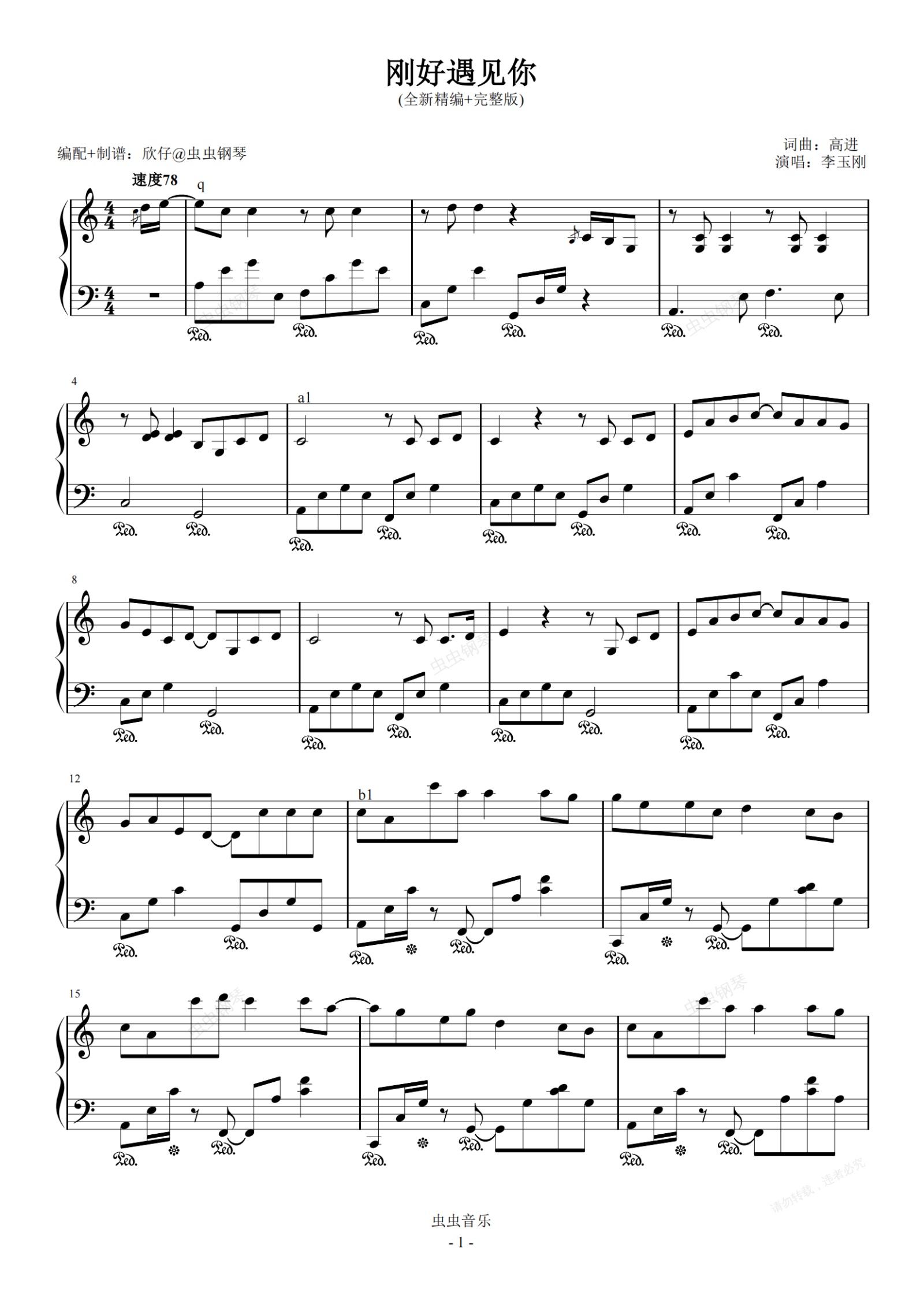 钢琴谱:李玉刚-C《刚好遇见你》(全新精编+完整版)