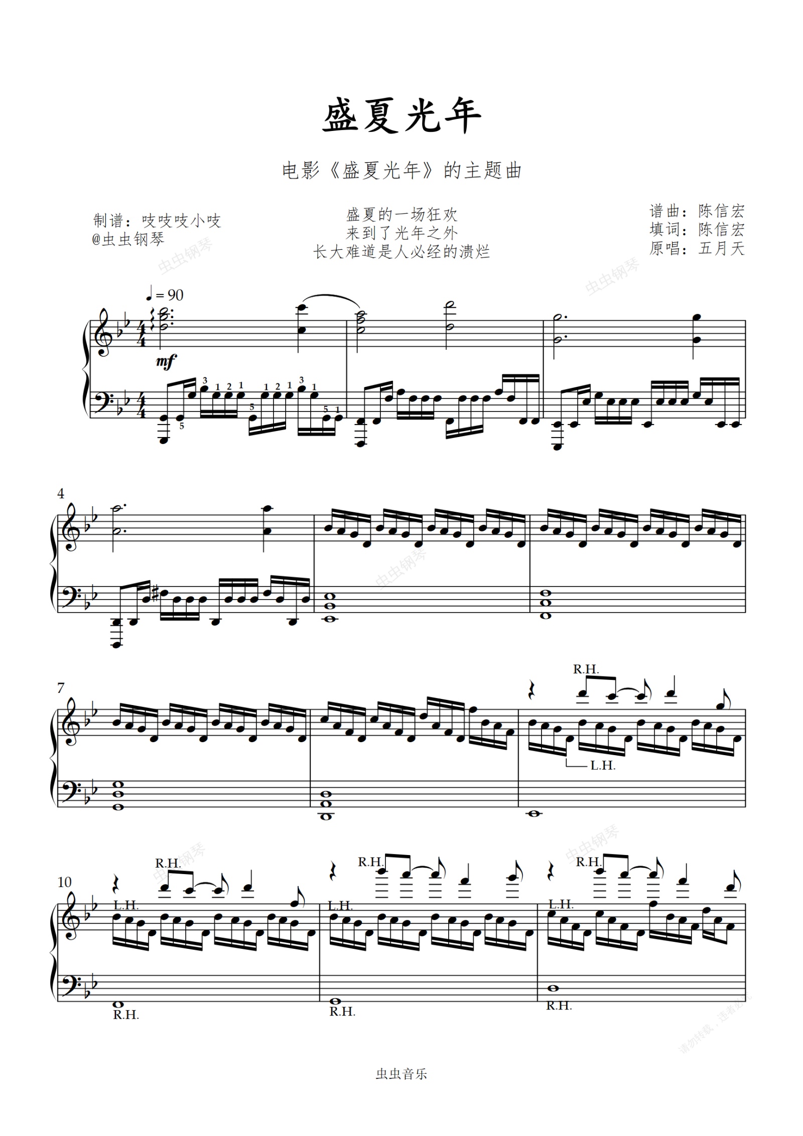 钢琴谱:盛夏光年-g-五月天 【高级难度】新编曲完整版 吱吱编配