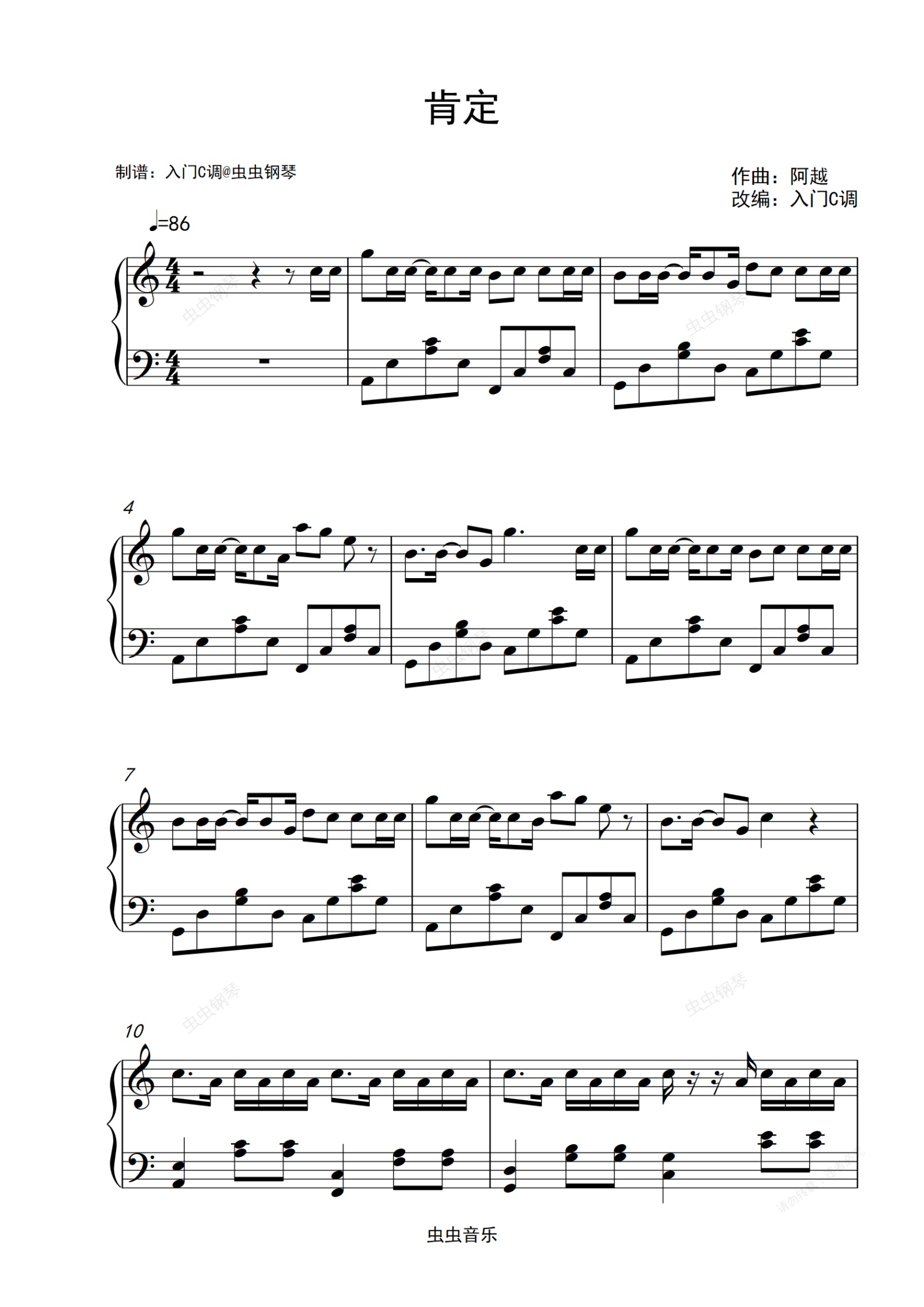 钢琴谱:RE-D、是二哈ya、masta 《肯定》入门C调简单版