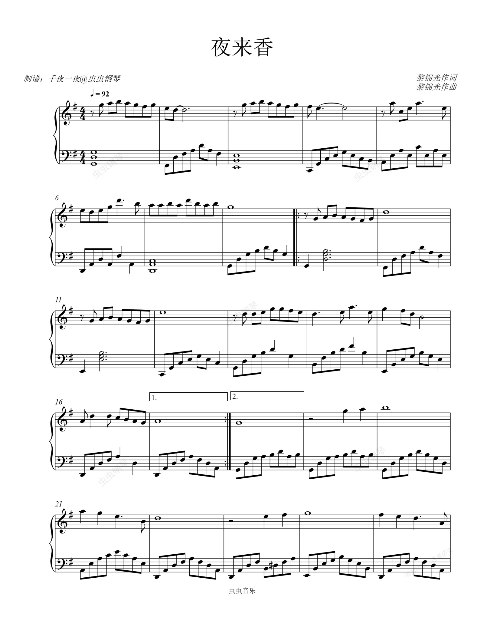 钢琴谱:邓丽君《夜来香》一首可以唱入人心扉的经典金曲