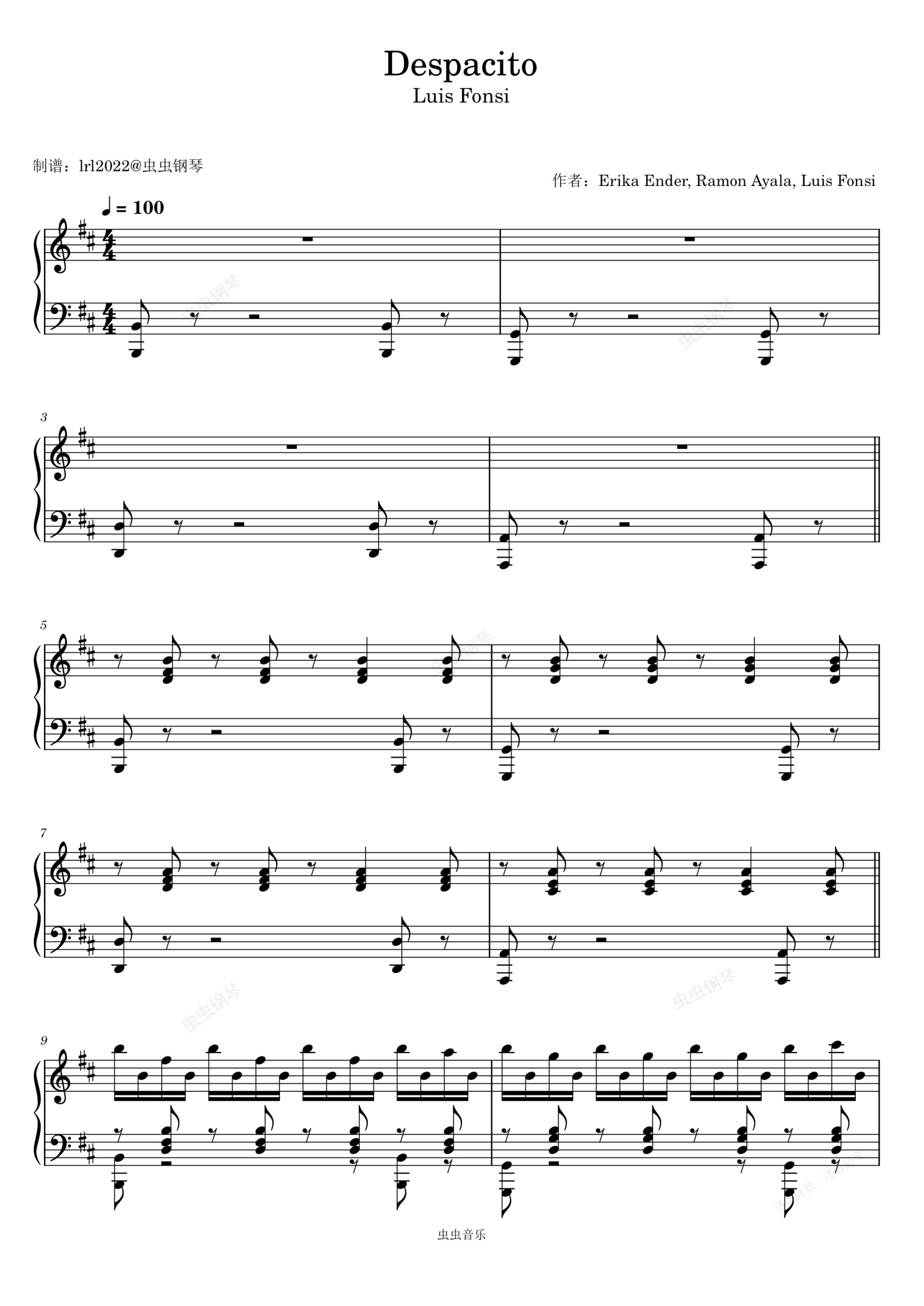 钢琴谱:Despacito - Luis Fonsi - 钢琴独奏