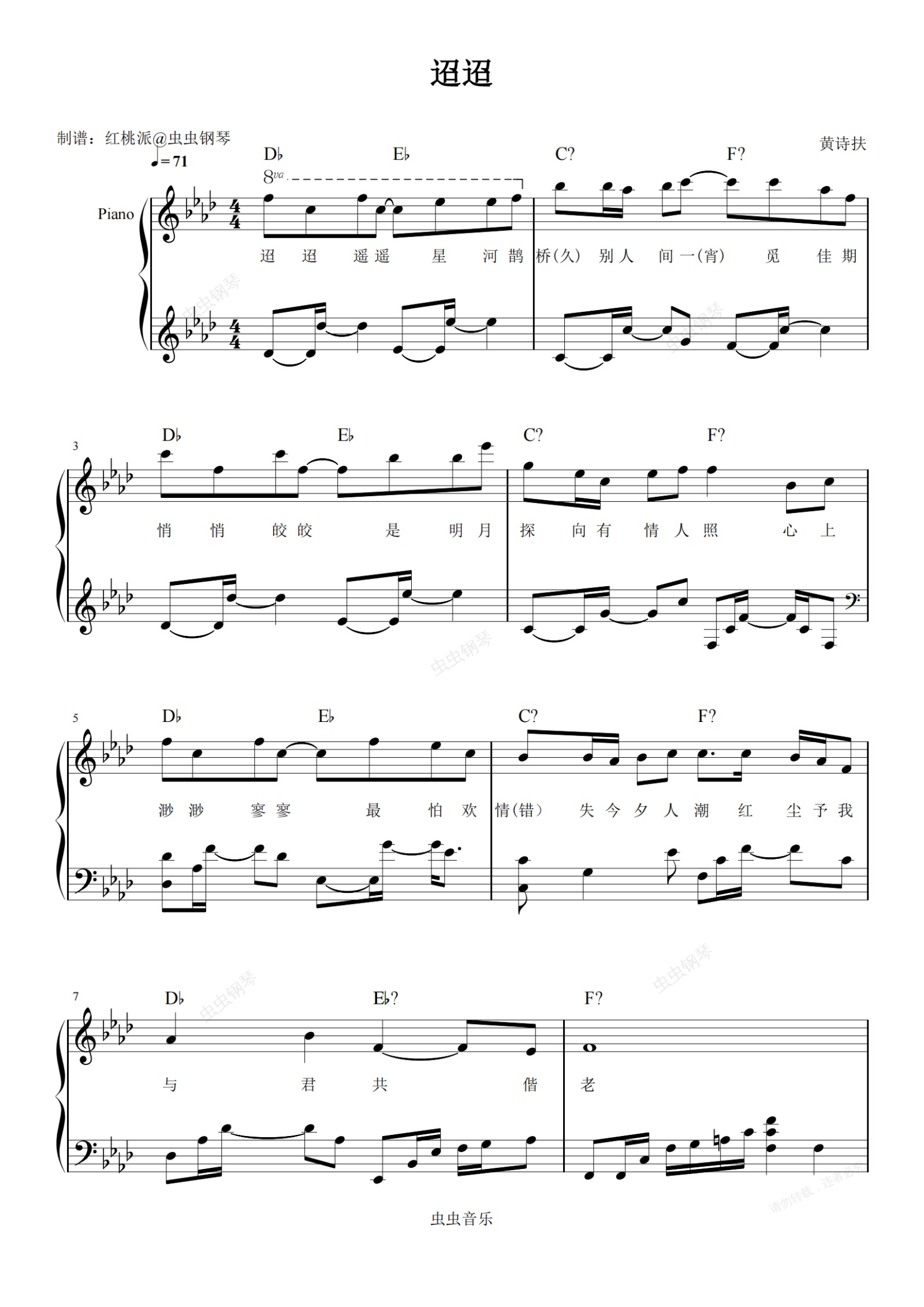 钢琴谱:迢迢(《逆水寒》七夕宣传曲)-黄诗扶