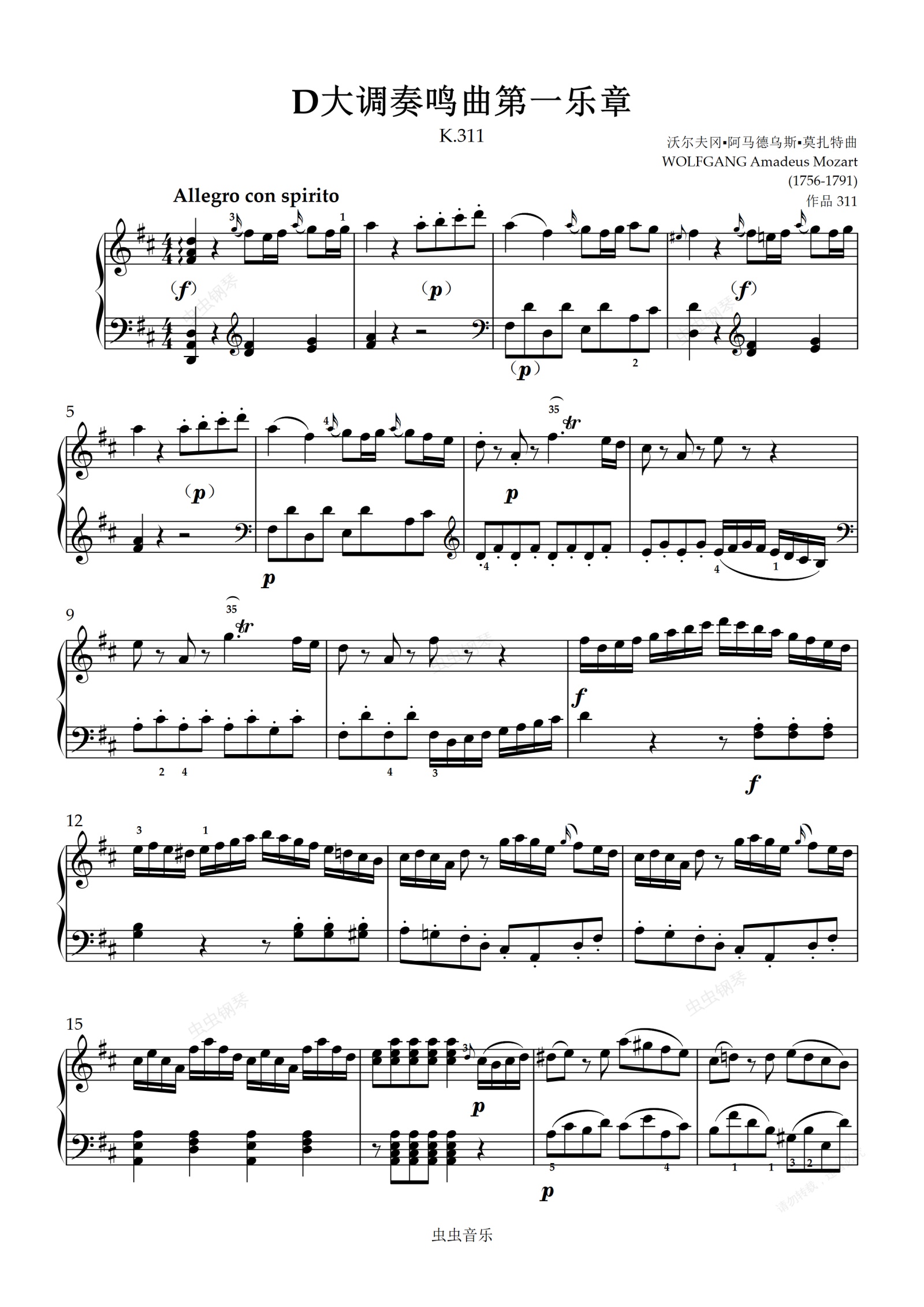 钢琴谱:7级莫扎特D大调奏鸣曲第一乐章K311(上音2022考级)