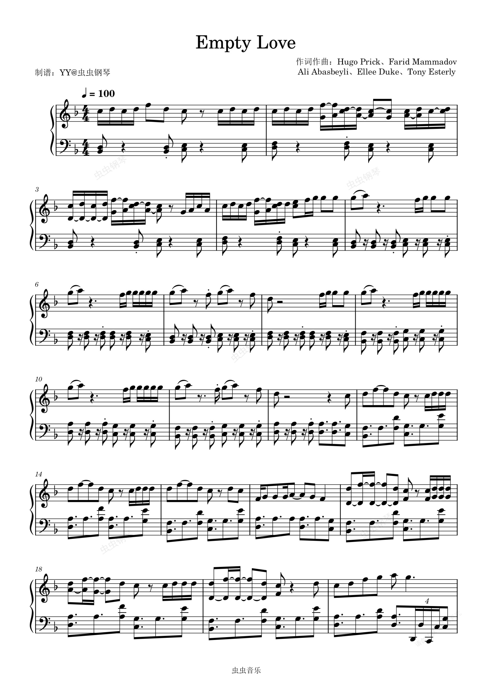 钢琴谱:Empty Love高还原多声部