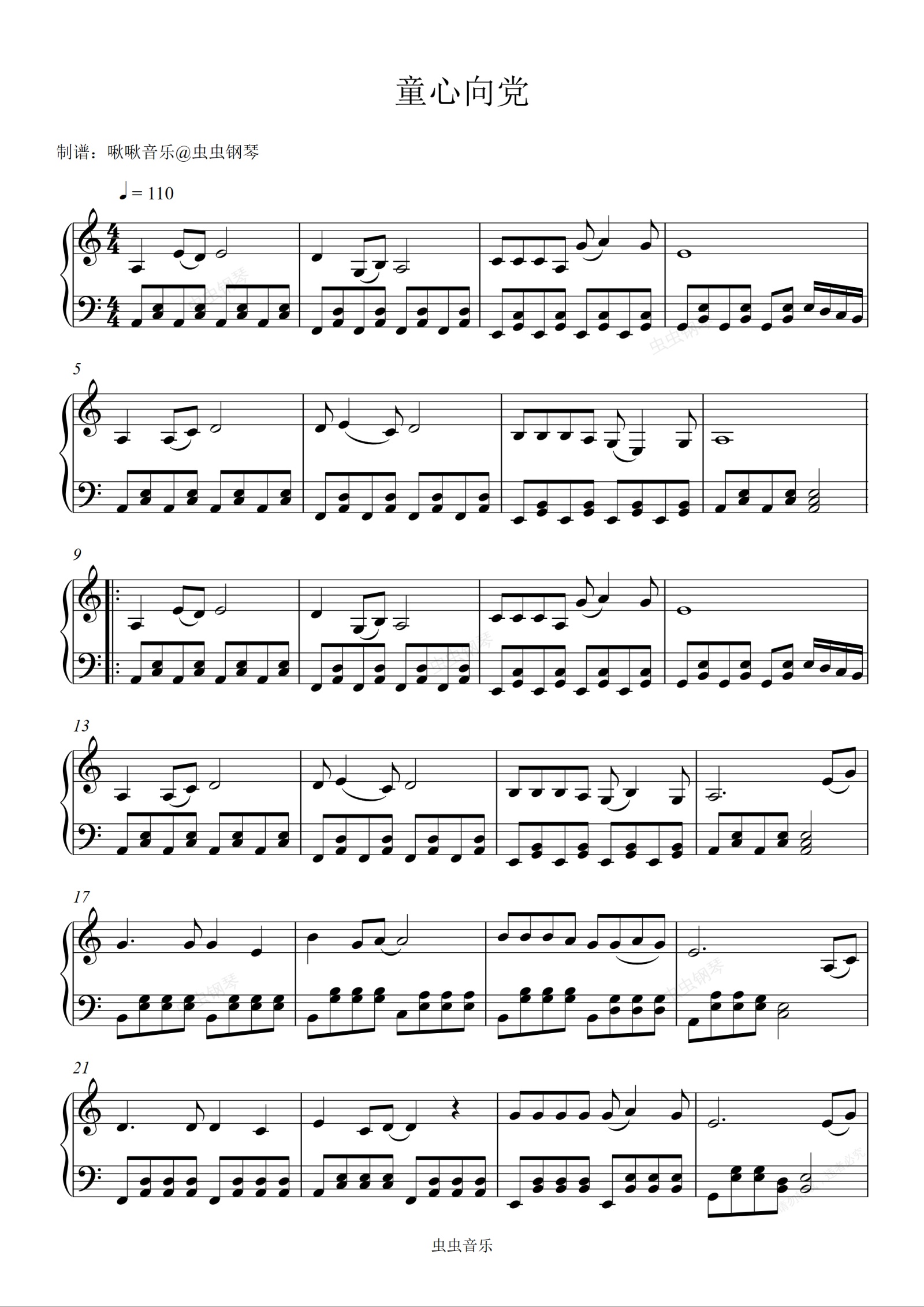 钢琴谱:童心向党