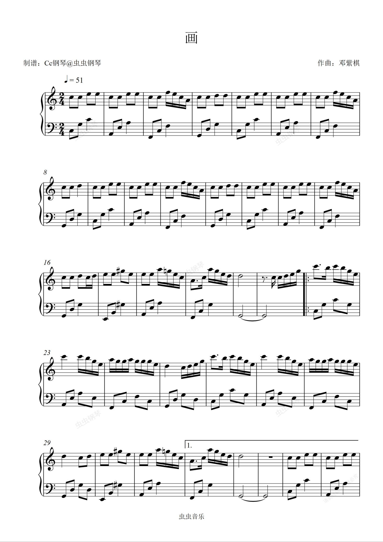 钢琴谱:画 C调 好听易上手