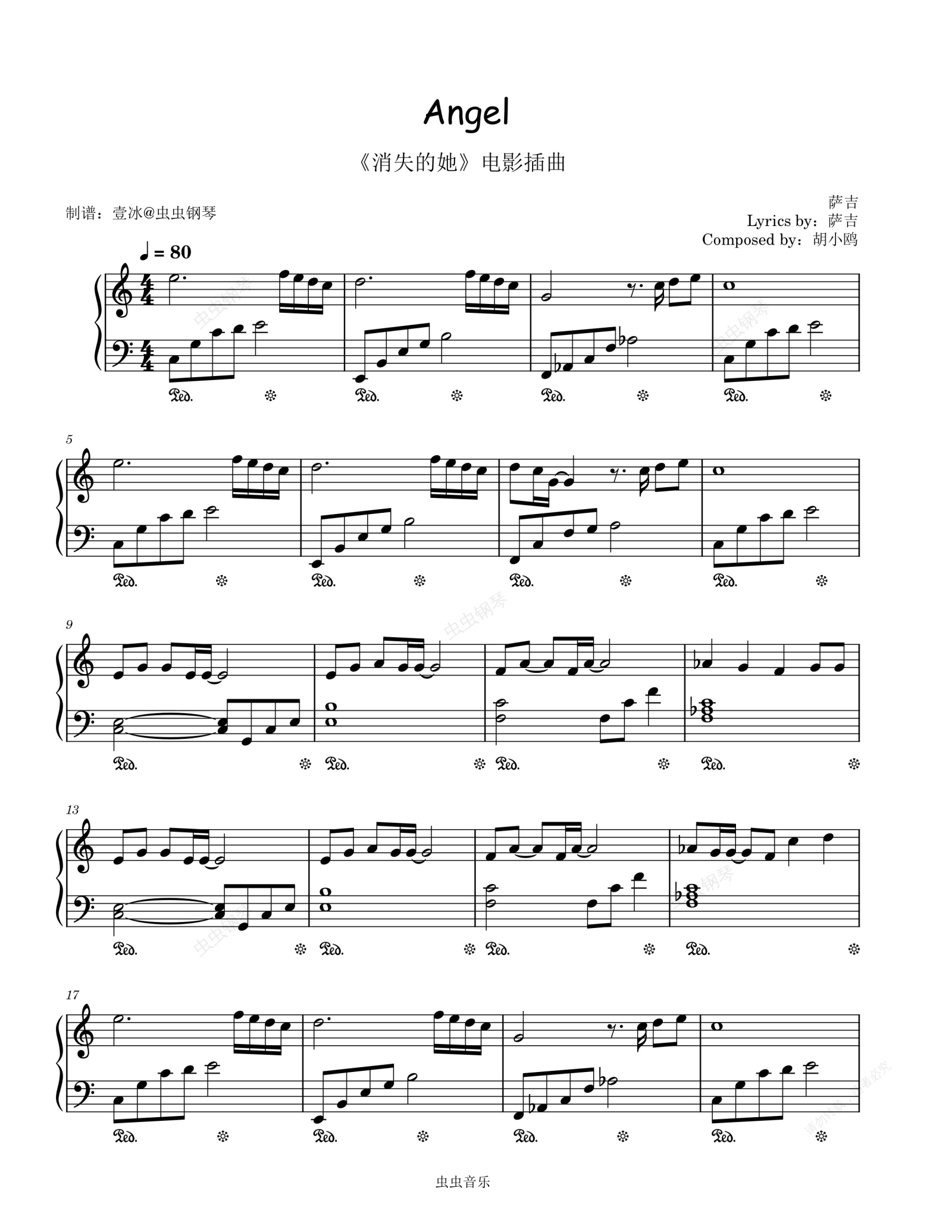 钢琴谱:Angel (《消失的她》电影插曲) - 萨吉