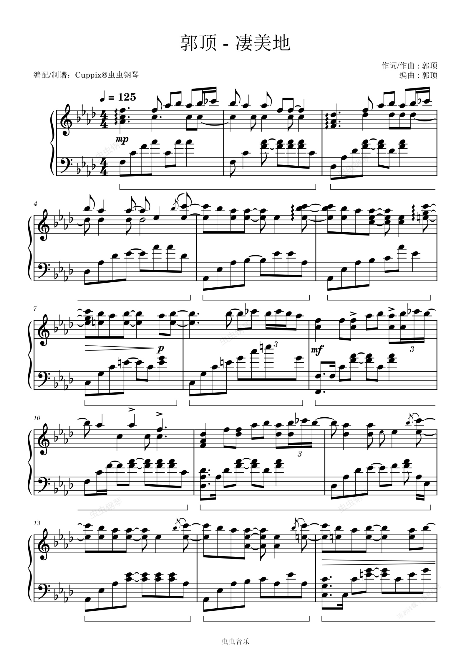 钢琴谱:郭顶《凄美地》钢琴独奏-Cuppix编配