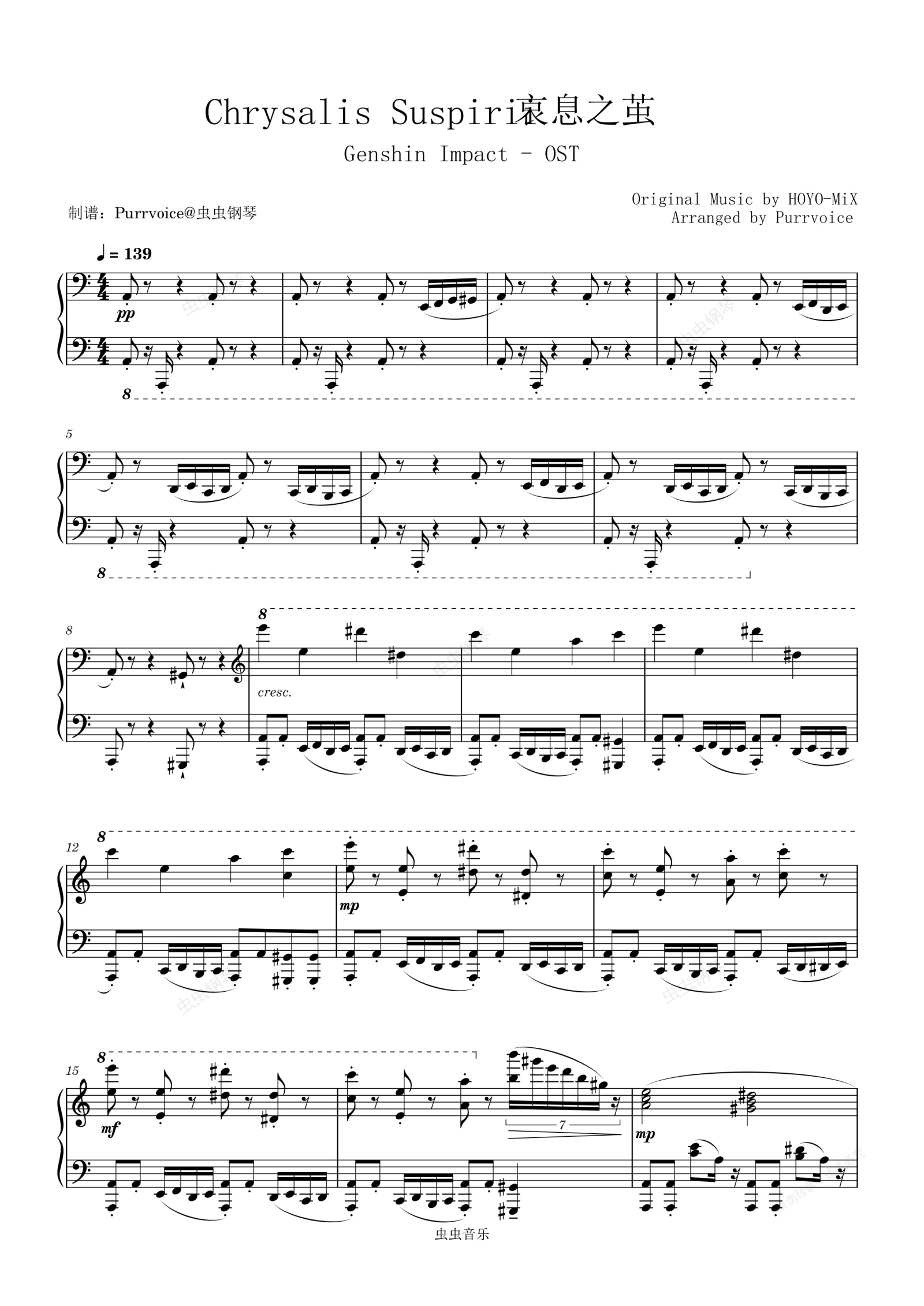 钢琴谱:Chrysalis Suspirii 哀息之茧