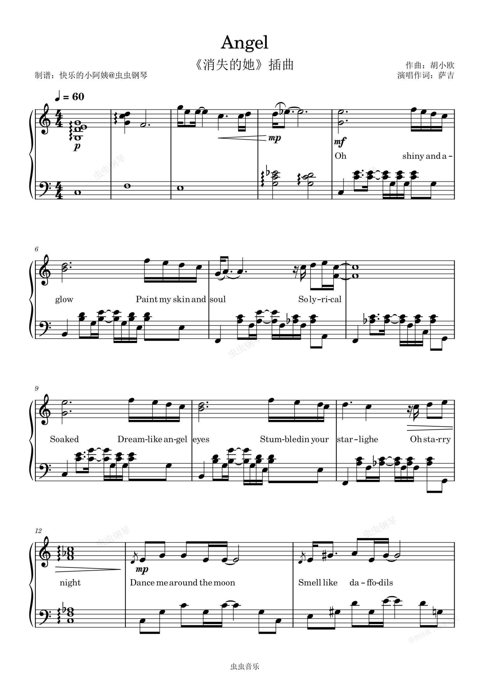 钢琴谱:Angel(《消失的她》插曲,含歌词完美演奏版)