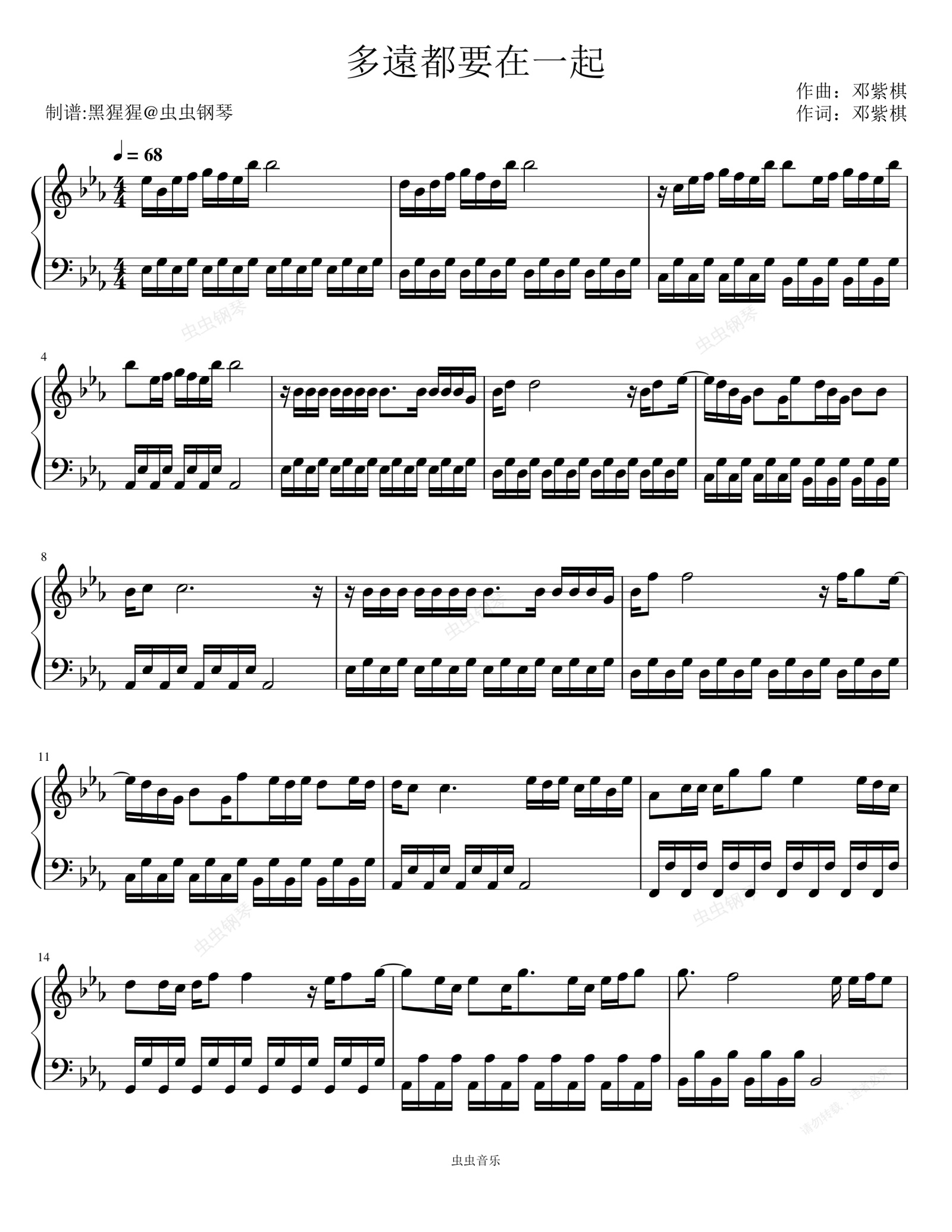钢琴谱:邓紫棋-Eb调 《多远都要在一起》