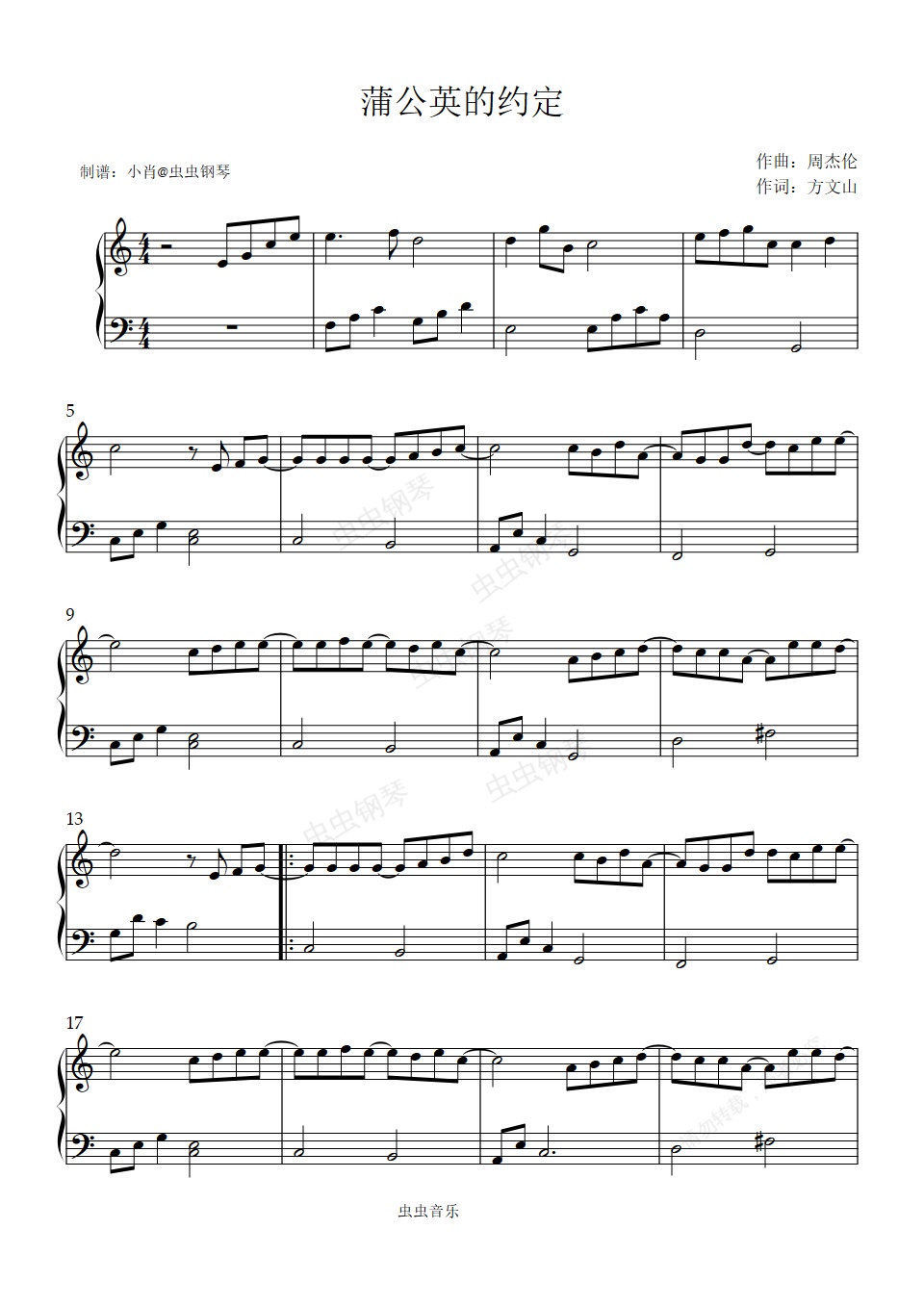 钢琴谱:拜厄程度流行简易版 蒲公英的约定