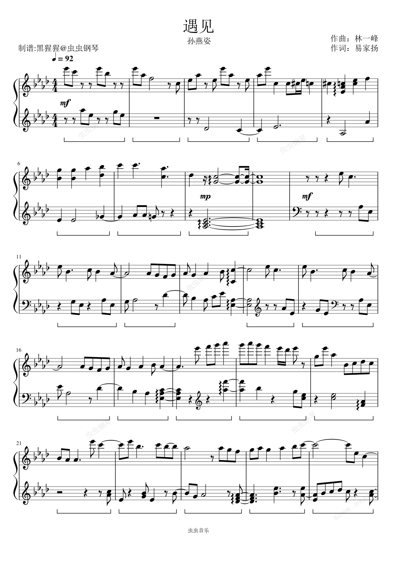 钢琴谱:孙燕姿-Ab调 《遇见》