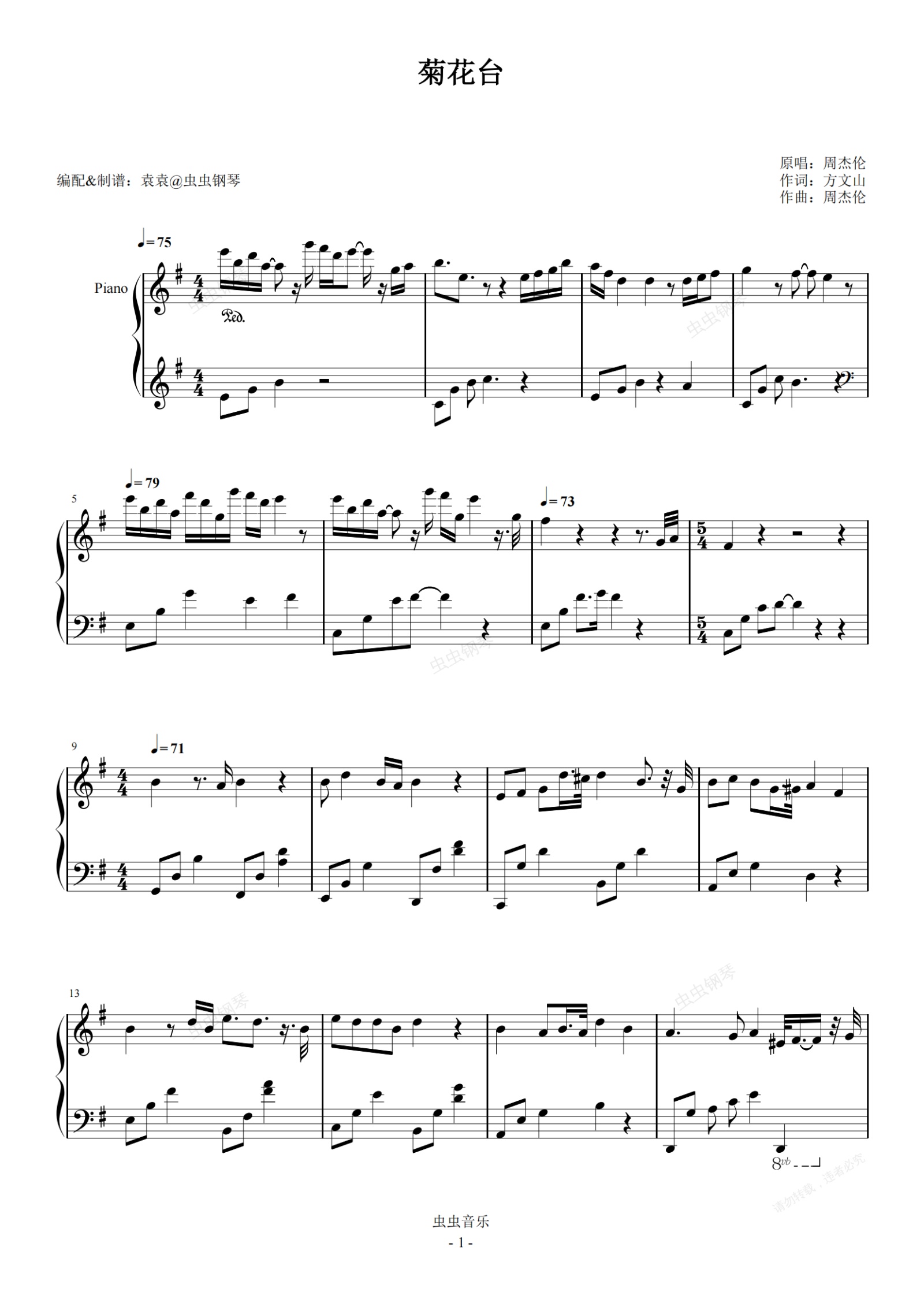 钢琴谱:菊花台 周杰伦 简易编配版 G大调