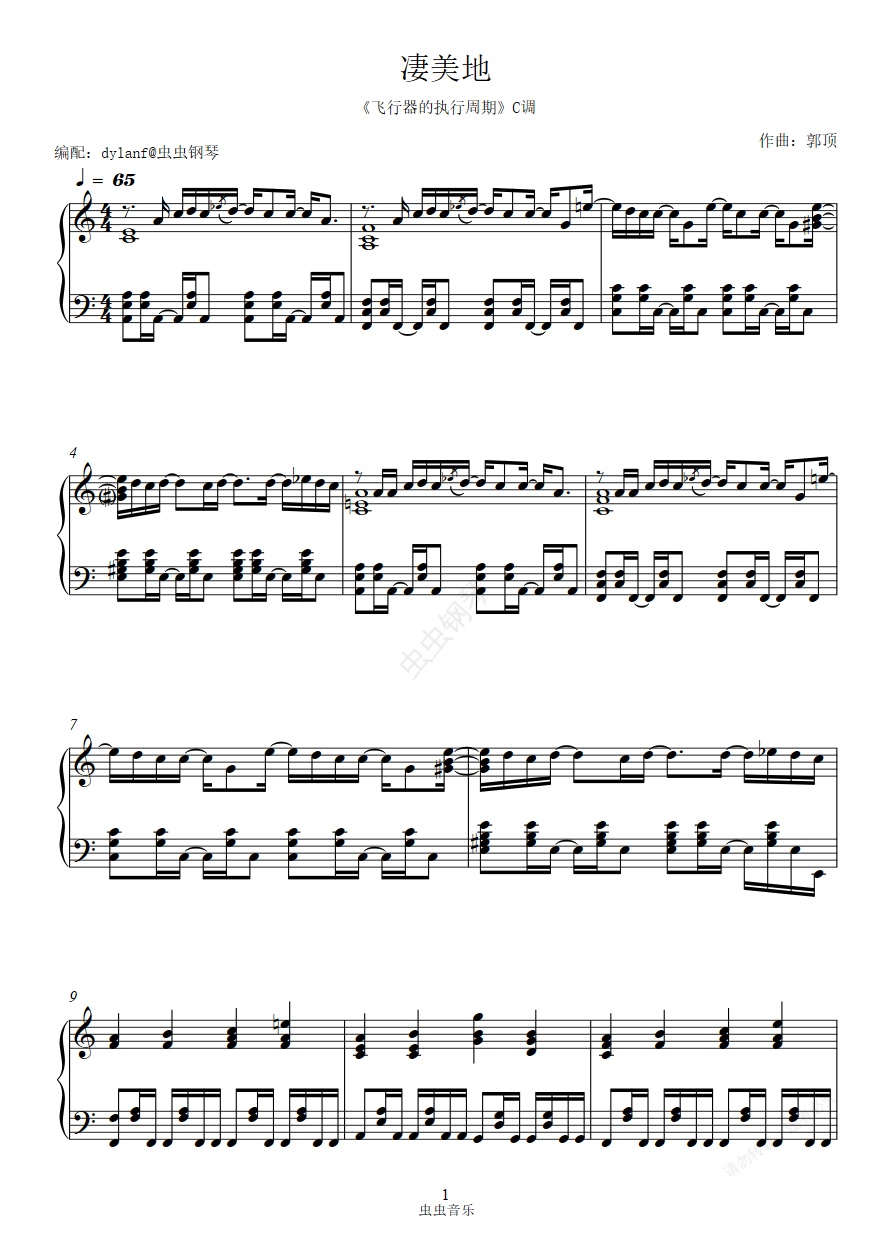 钢琴谱:C调 凄美地(99%还原)好听好弹 郭顶