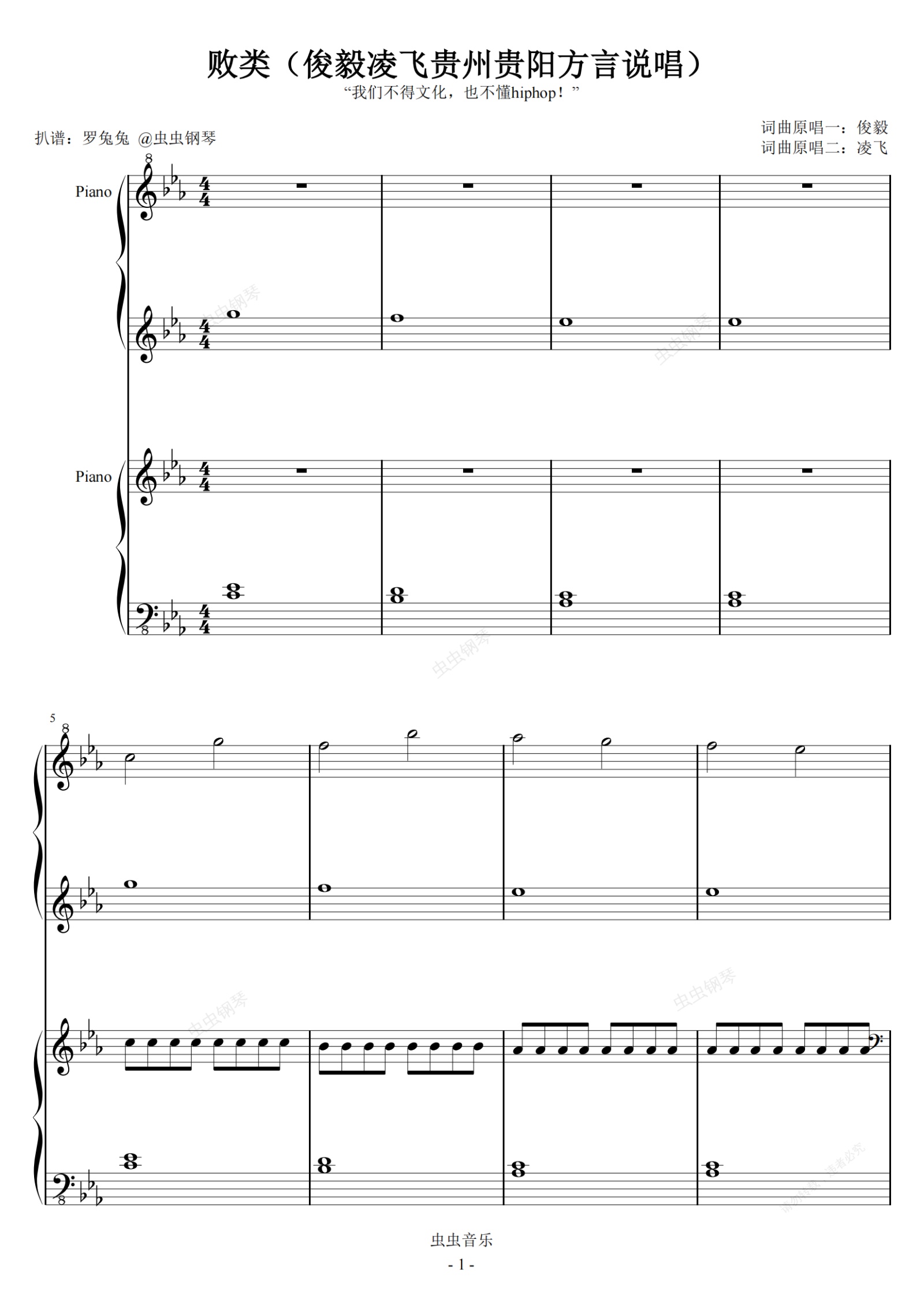 钢琴谱:败类(俊毅凌飞贵州贵阳方言说唱)